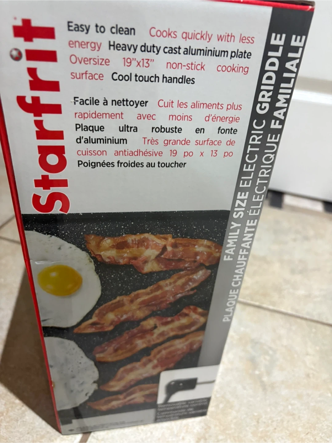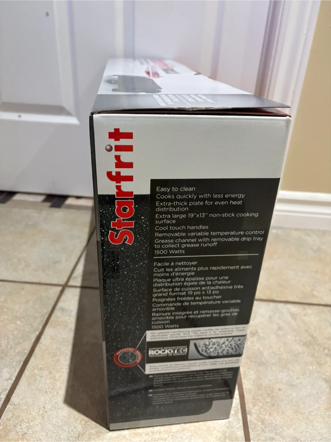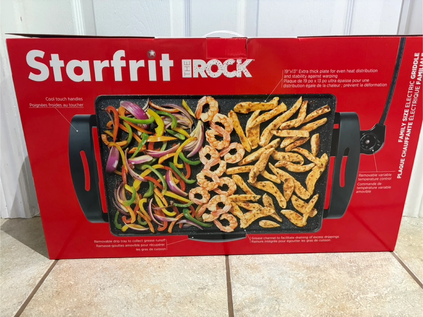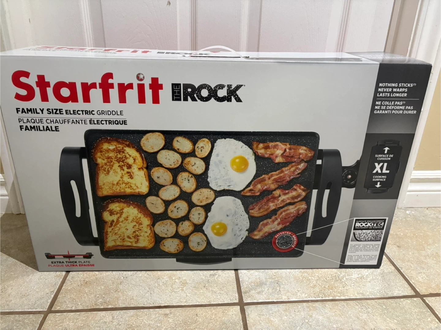 I'm selling a brand new Starfrit The Rock Family Size Electric Griddle! It's still in its original packaging. This griddle features: