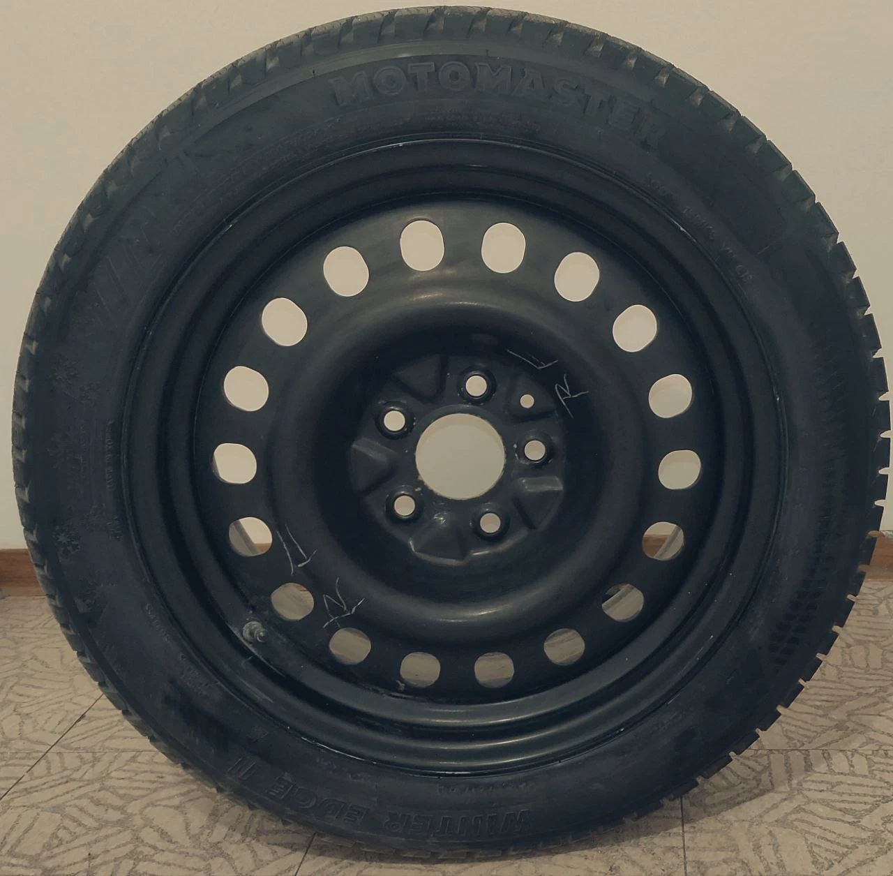 A set of 215/50R17 91H winter tires "MotoMaster Winter Edge II Tire For Passenger & CUV" on steel wheels "RSSW X7" (Backside Spacing: 5.57 in; Bolt Hole Diameter: 15 mm; Bolt Pattern: 5-114.3 mm). I bought these tires for my 2025 Honda Civic. The tires are in excellent condition, I used them from January 10 to April 5, 2025 (less than 3,000 km). The tires performed well in winter, made at the Hankook plant in Korea.