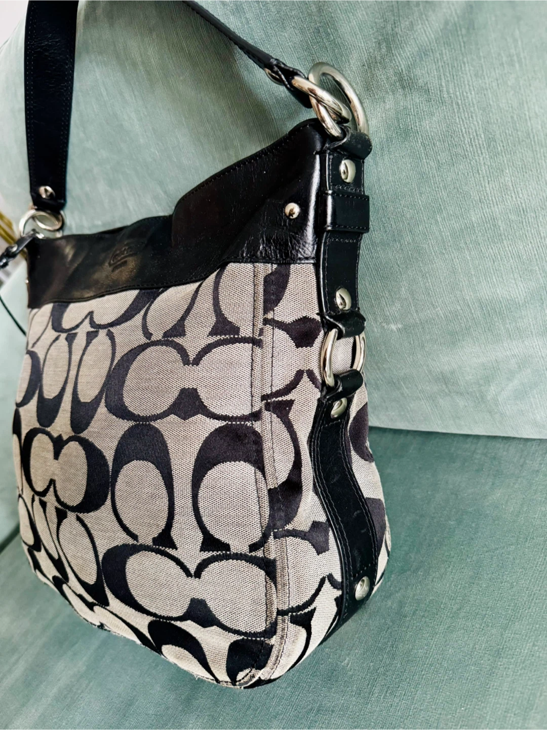 Selling a fabulous authentic Coach hobo bag in a signature black and grey pattern! It's in great condition with some light wear and ready for the new year.