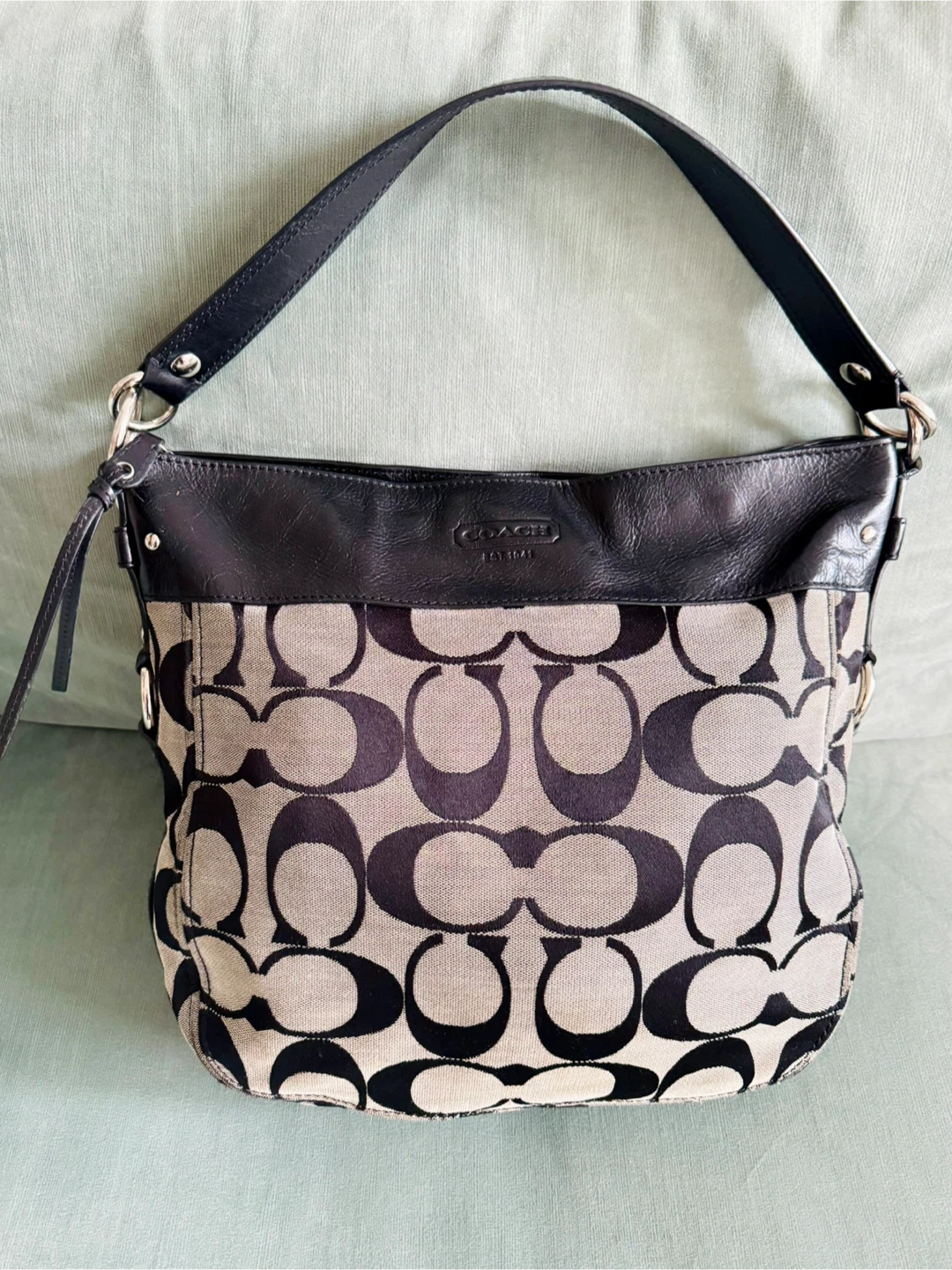 Coach Signature Hobo Bag Purse: Black & Grey