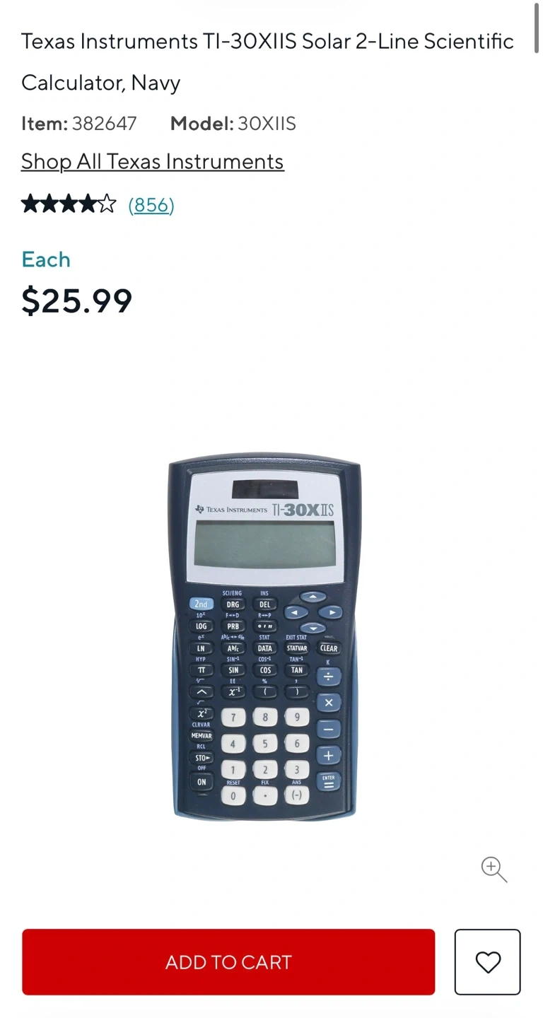 Selling a Texas Instruments TI-30XIIS scientific calculator.
