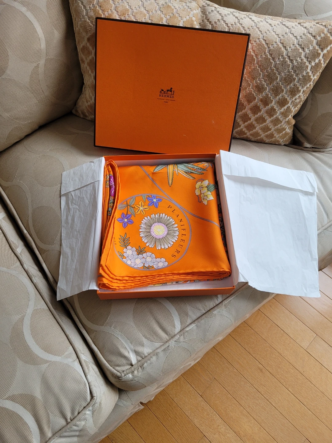 AUTHENTIC Hermès Paris Planifleurs Silk Scarf with Box