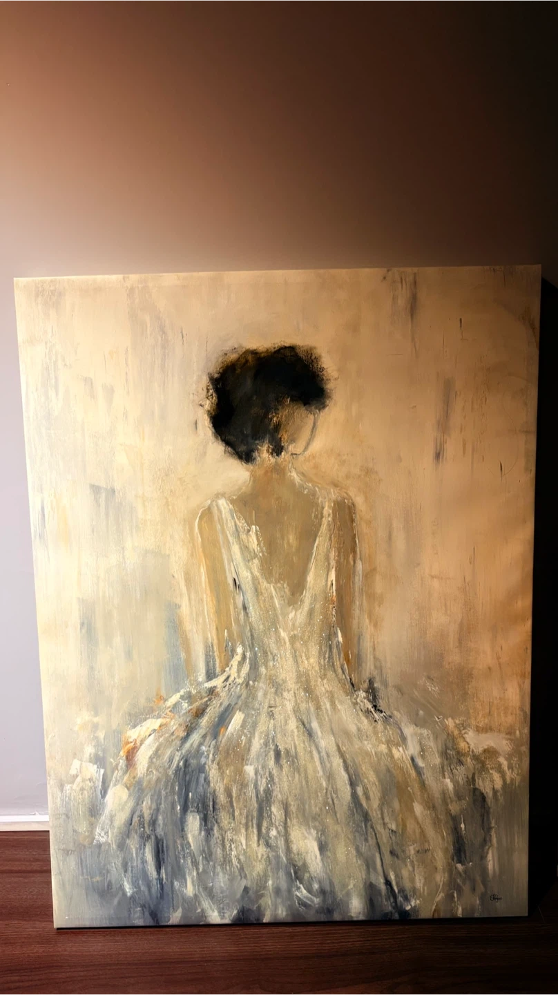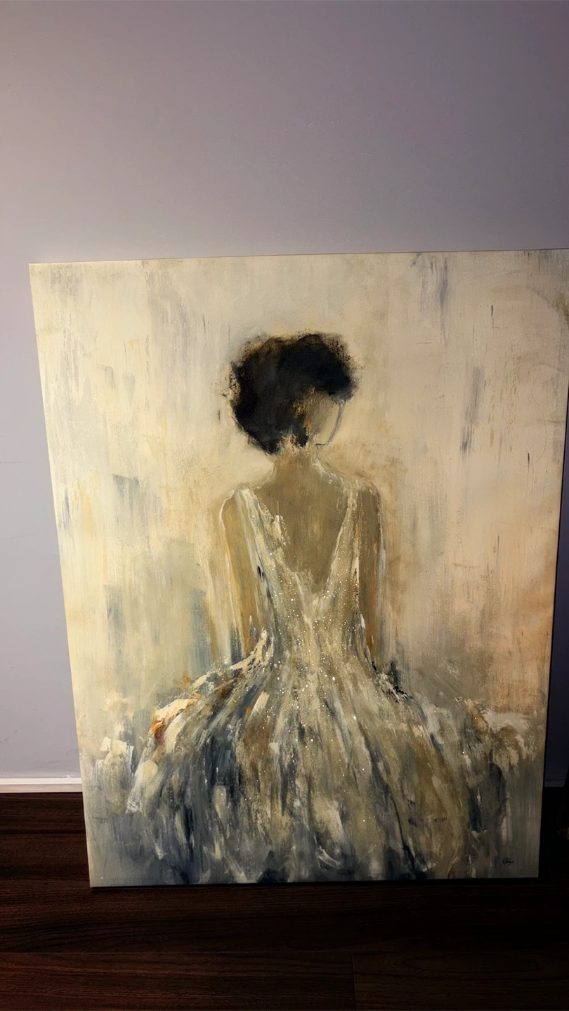Exquisite Ornate Elegant Lady Oil painting on Canvas. This has beautiful, subtle, grainy shimmer on it. It’s a beautiful art piece! Will make a stunning addition to your living space. Price is firm