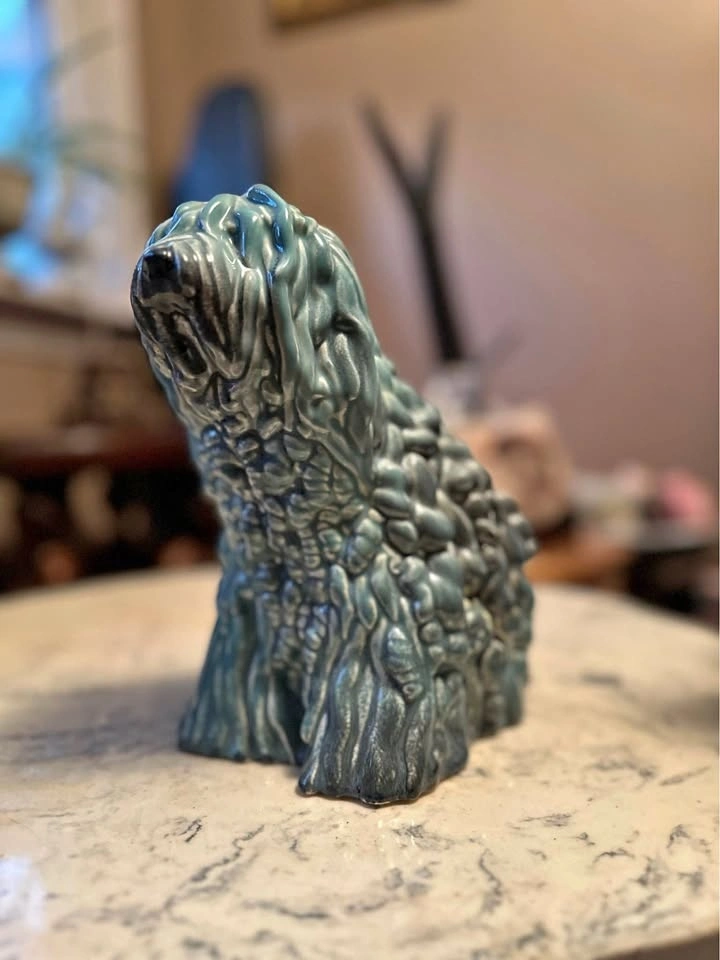 Super cute retro ceramic pup with the fluffiest glaze! Made in England by Beswick, marked #4158 on the base. Perfect little guy for your shelf or dog lover’s collection.