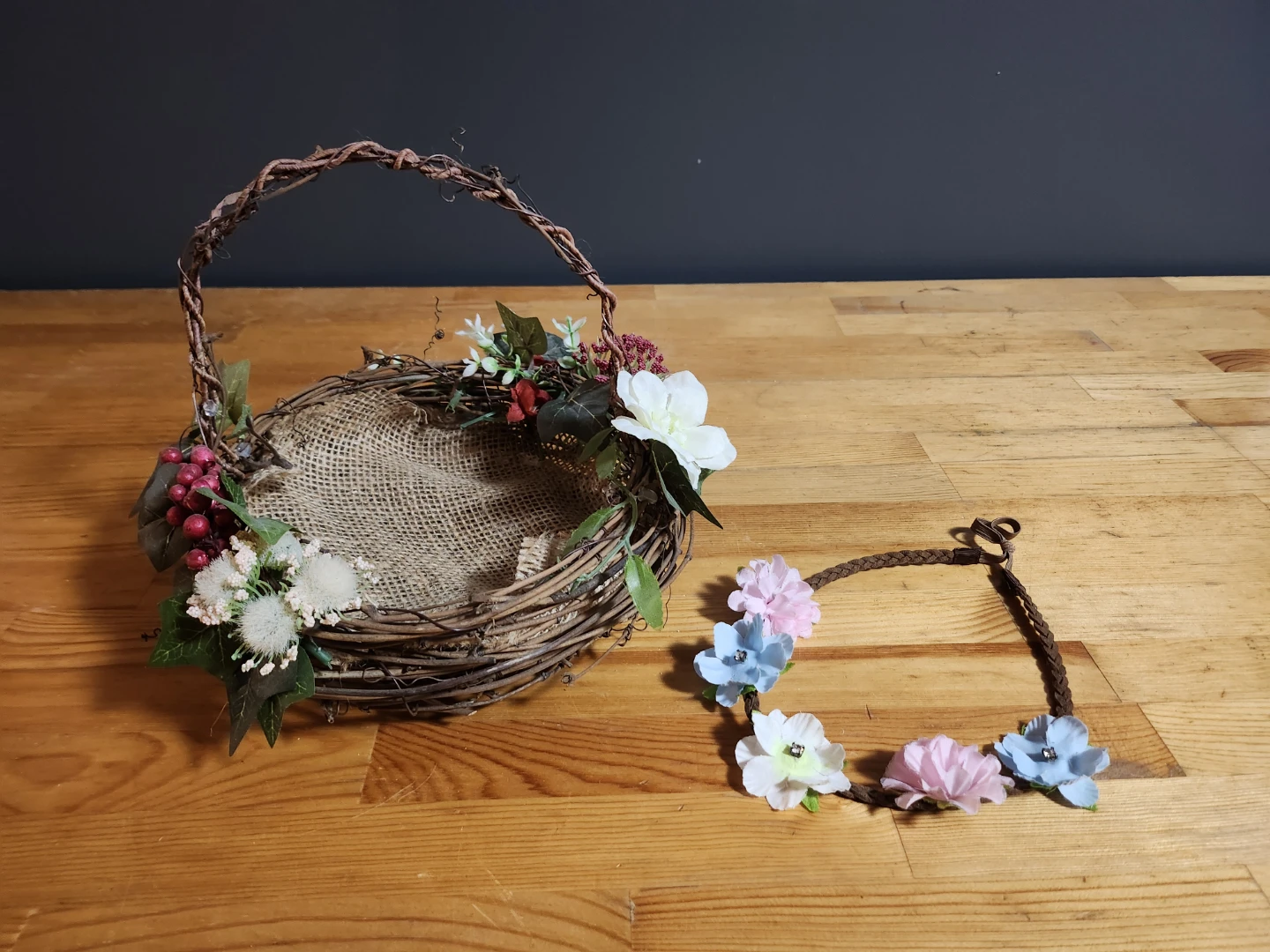 Floral Decorated Basket & Headband