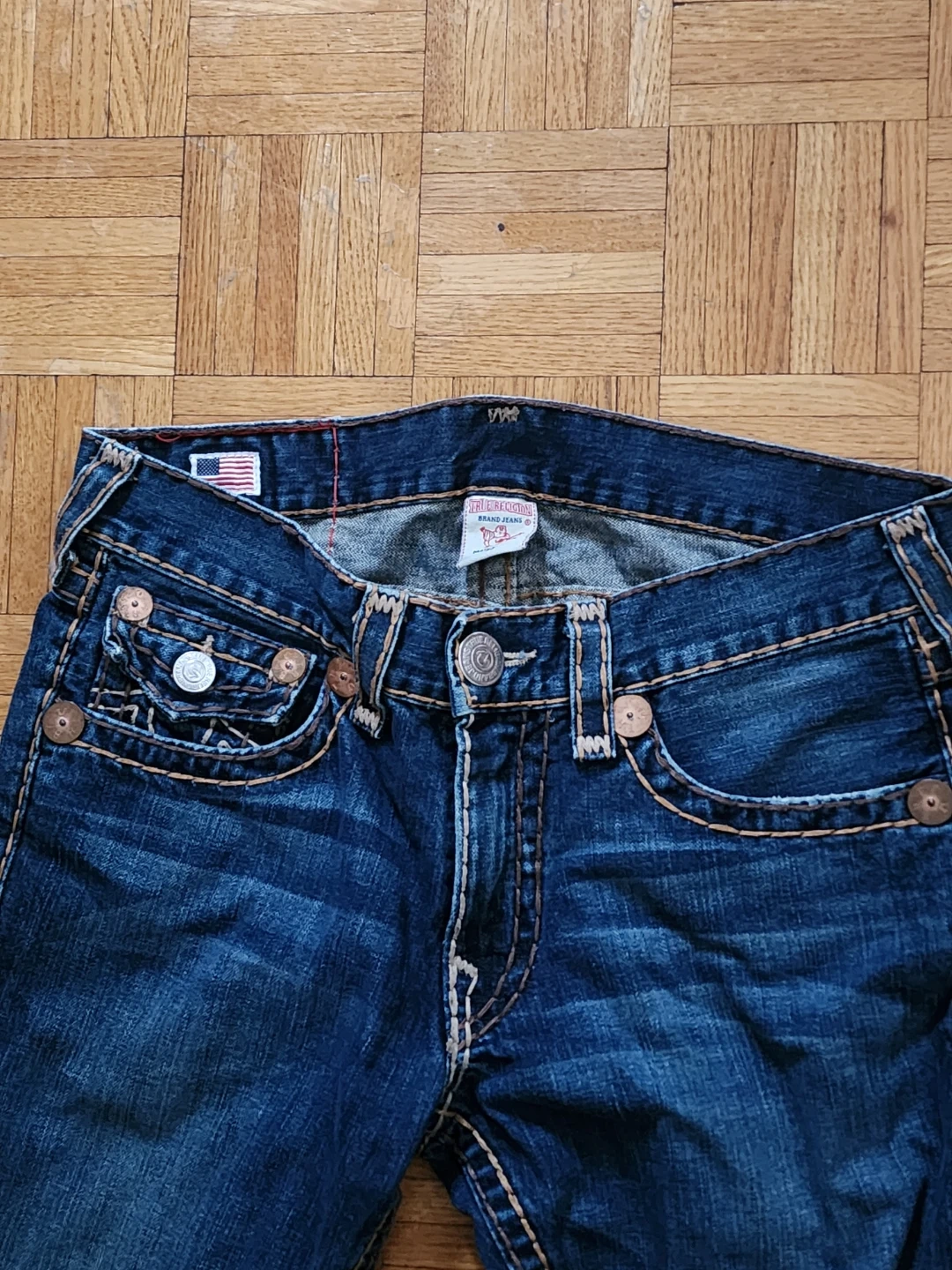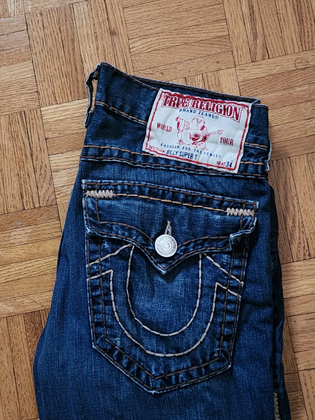 Selling a pair of True Religion Billy Super T jeans. They're in great shape and have that classic True Religion look. The size is 34. They're a stylish and comfortable pair of jeans!