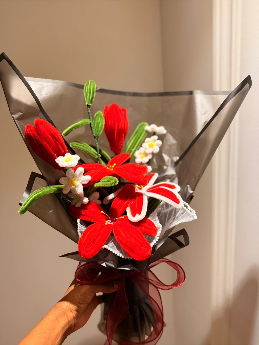 Selling beautiful handmade fuzzy wire flower bouquets! These are perfect for adding a touch of charm to any room or as a thoughtful gift. Each bouquet is carefully crafted with attention to detail and comes wrapped ready to display