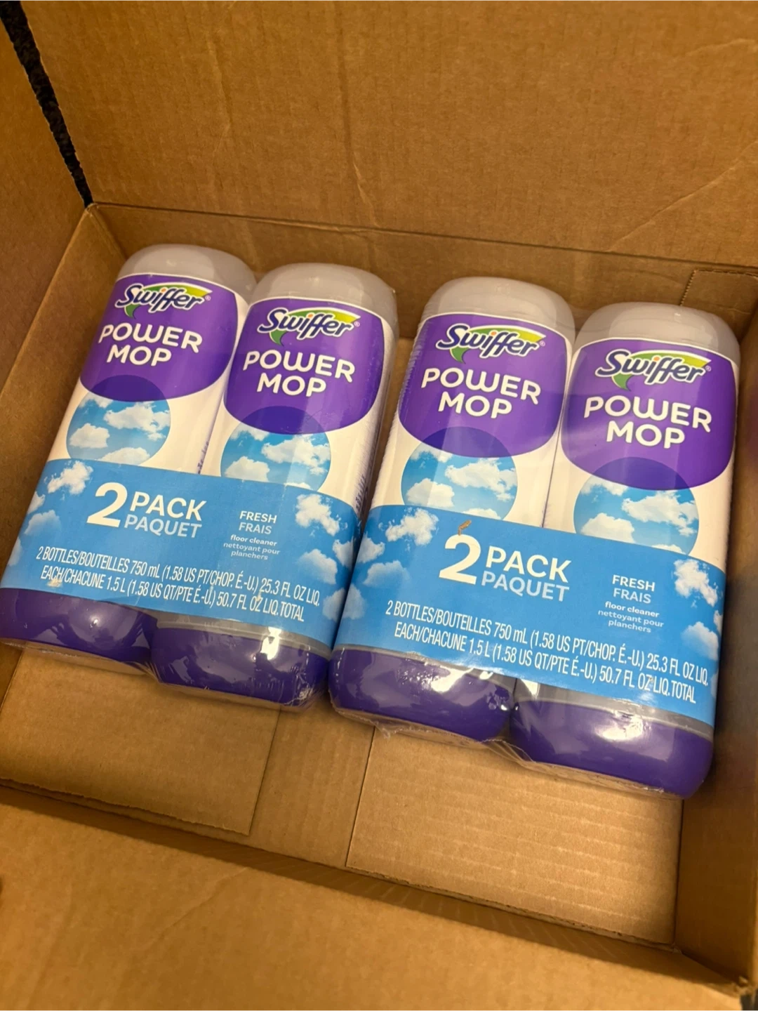 I'm selling a brand new Swiffer Power Mop refill pack! Each bottle contains 750 mL (25.3 fl oz) of cleaning solution, and each pack has two bottles. You'll get a total of 1.5 L (50.7 fl oz) of cleaning power in each pack