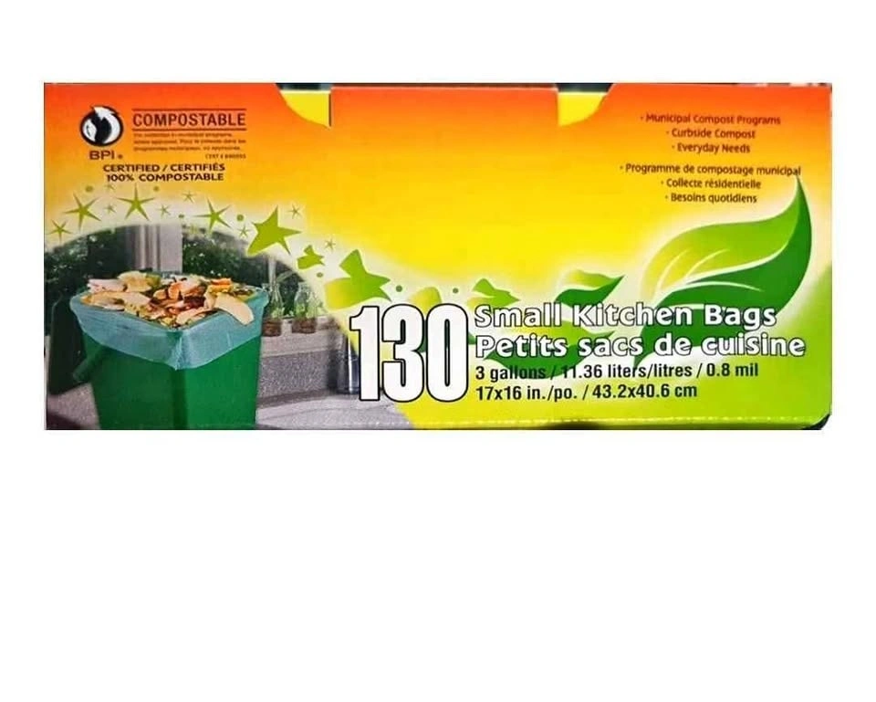 Selling brand new compostable kitchen bags. small size perfect for countertop compost bins. 130 count