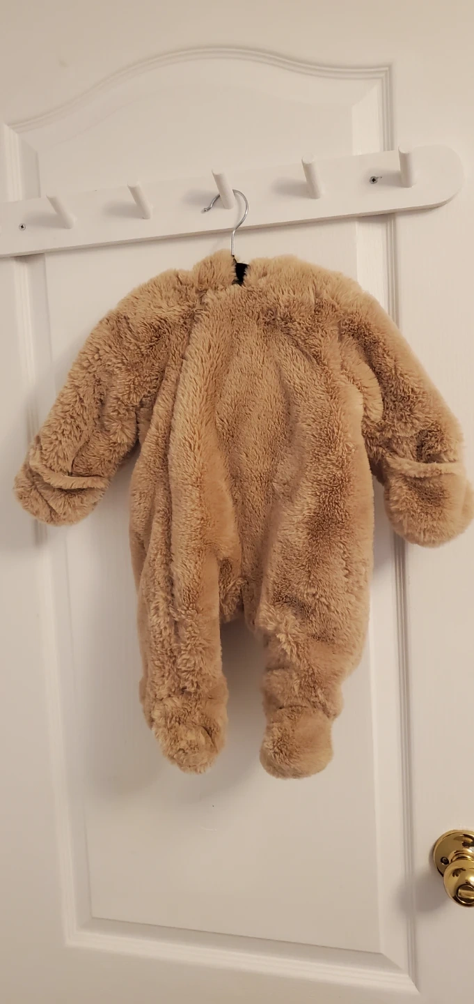 Super cute and cozy fuzzy bear onesie for your little one! Perfect for keeping baby warm during the colder months. The material is soft and plush, making it comfortable for baby to wear