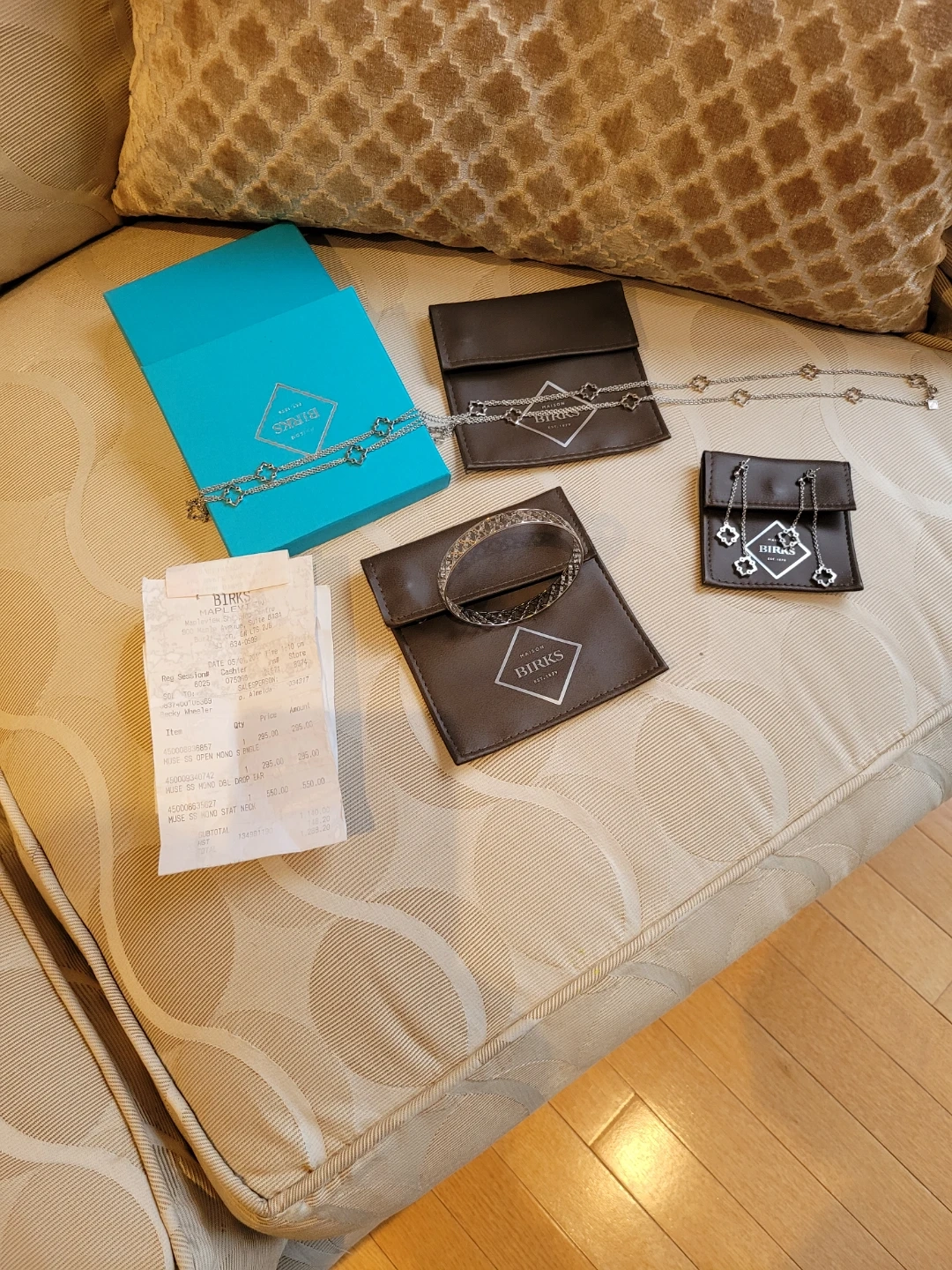 It includes a bracelet, a 36" necklace, and a pair of double drop earrings. All pieces are in excellent condition, they come with their original pouches. The original price for the set was $1,288.20 in 2019..See receipt