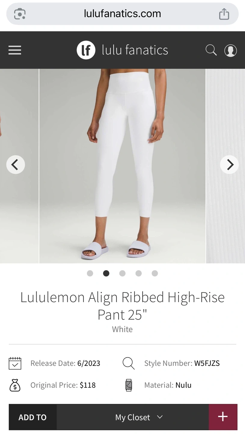 Lululemon Align Ribbed High-Rise Pants 25”in white and size 10