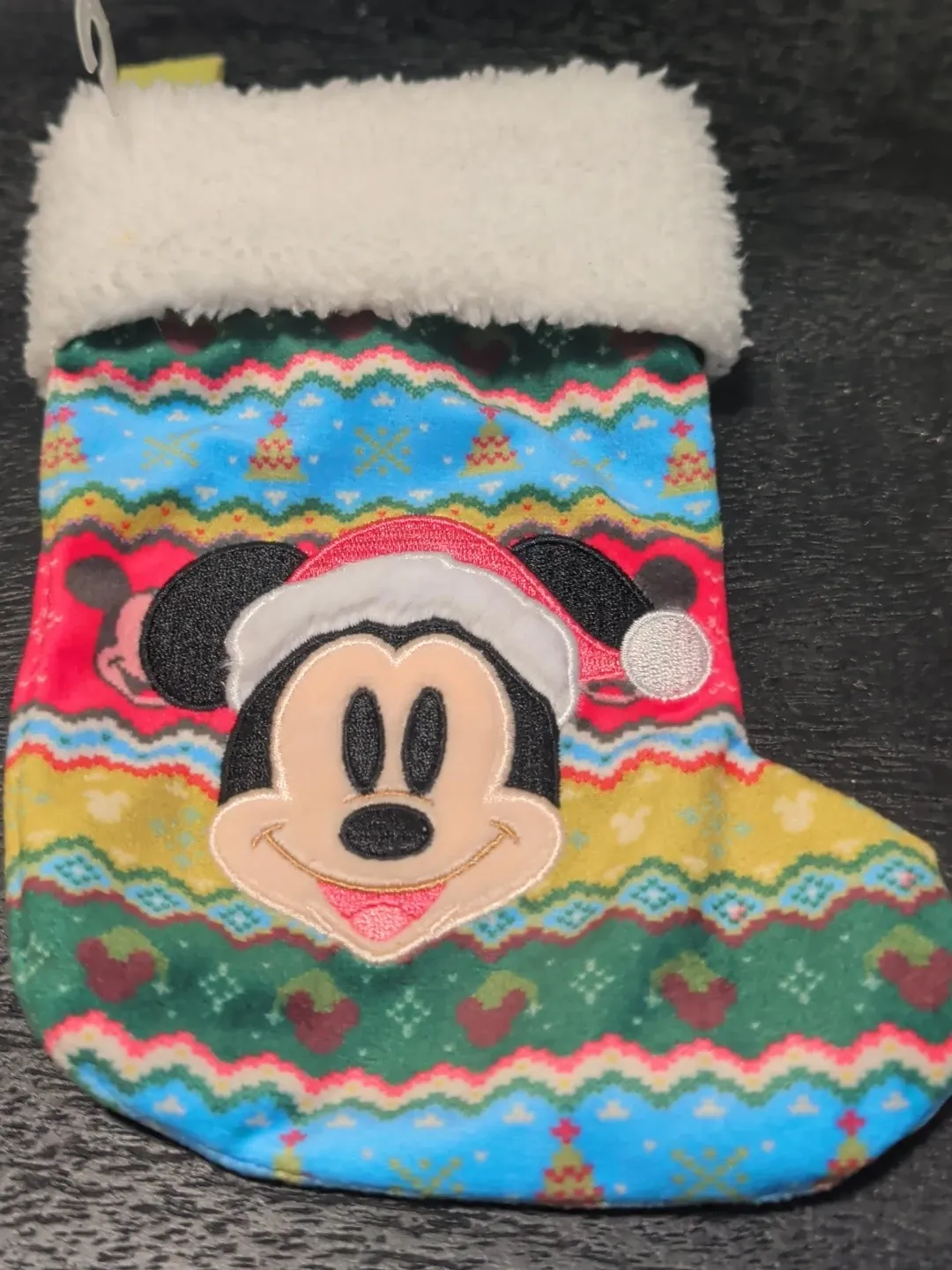 Get ready for the holidays with this adorable Mickey Mouse Christmas stocking! It features a colourful design with Mickey's face and festive patterns. Perfect for adding a touch of Disney magic to your Christmas decorations