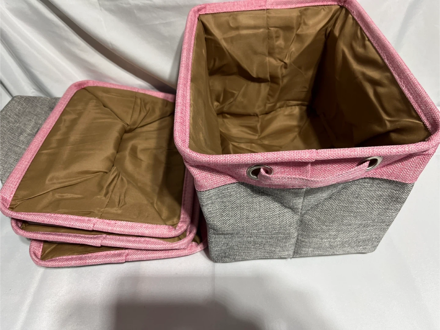 Set of 4 Pink & Grey Fabric Storage Bin