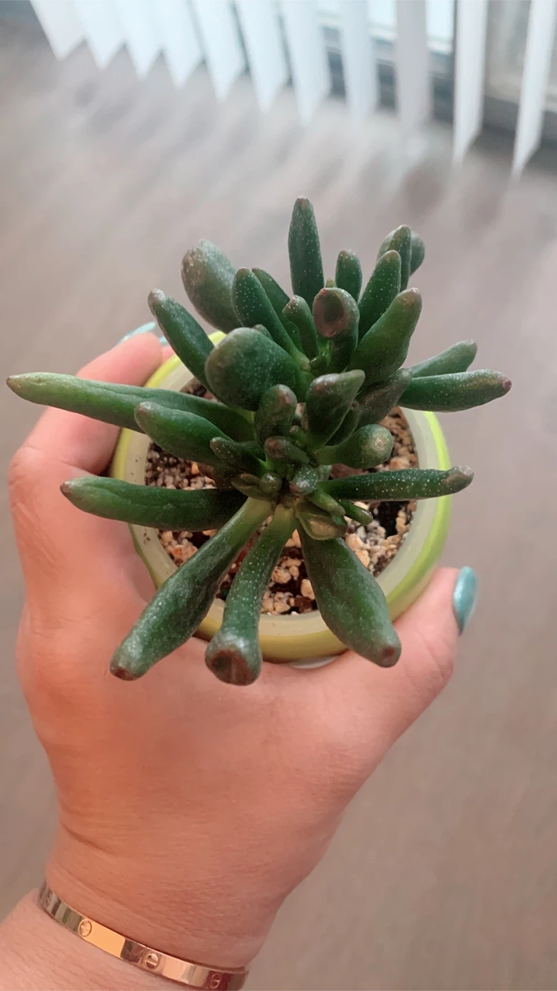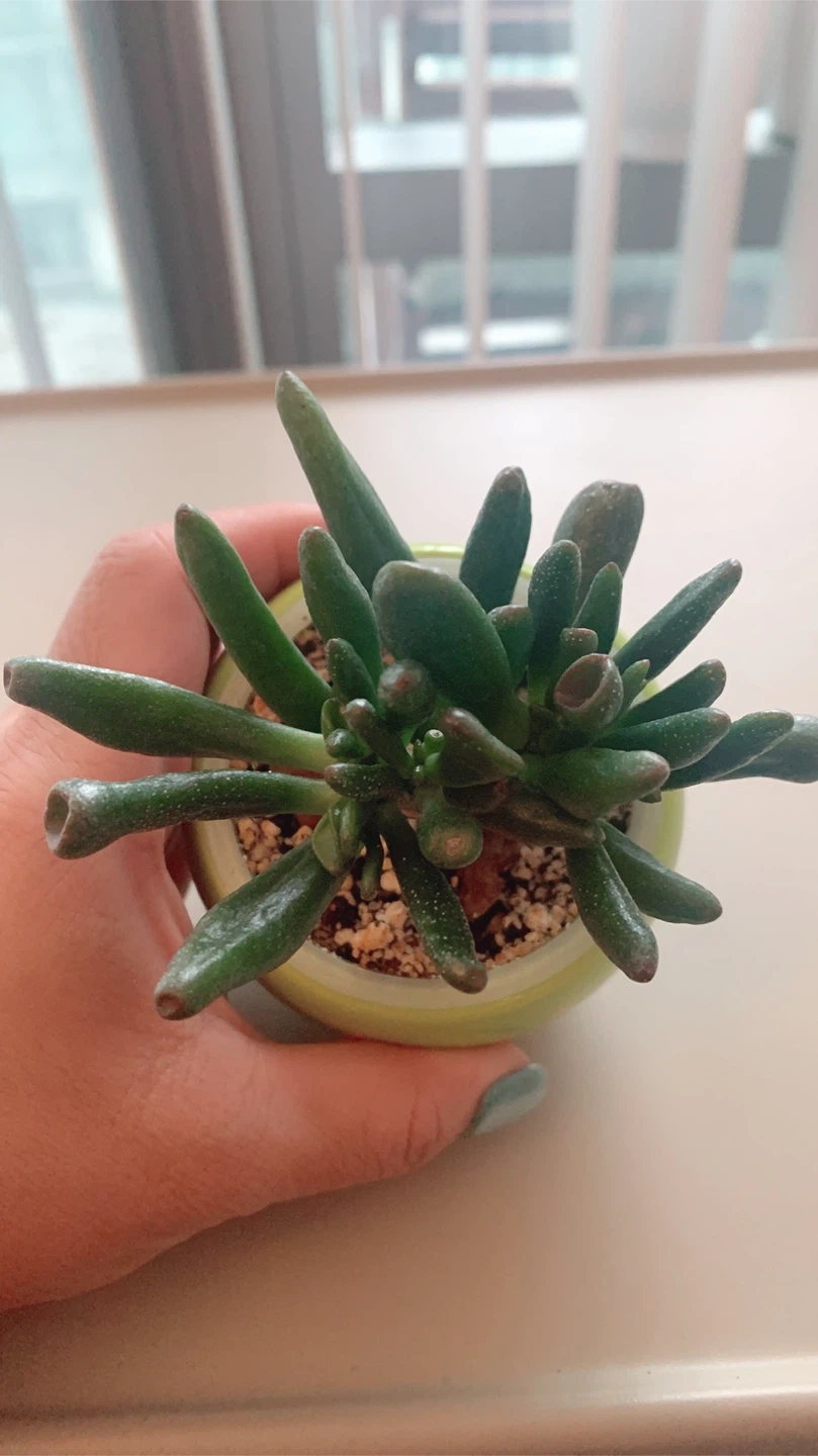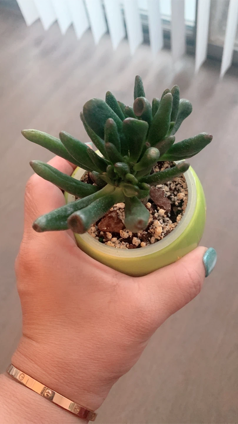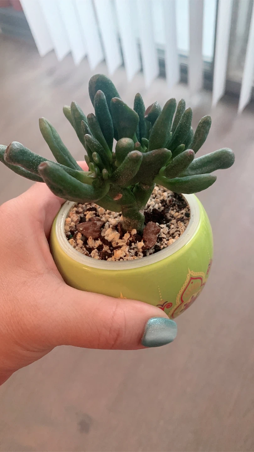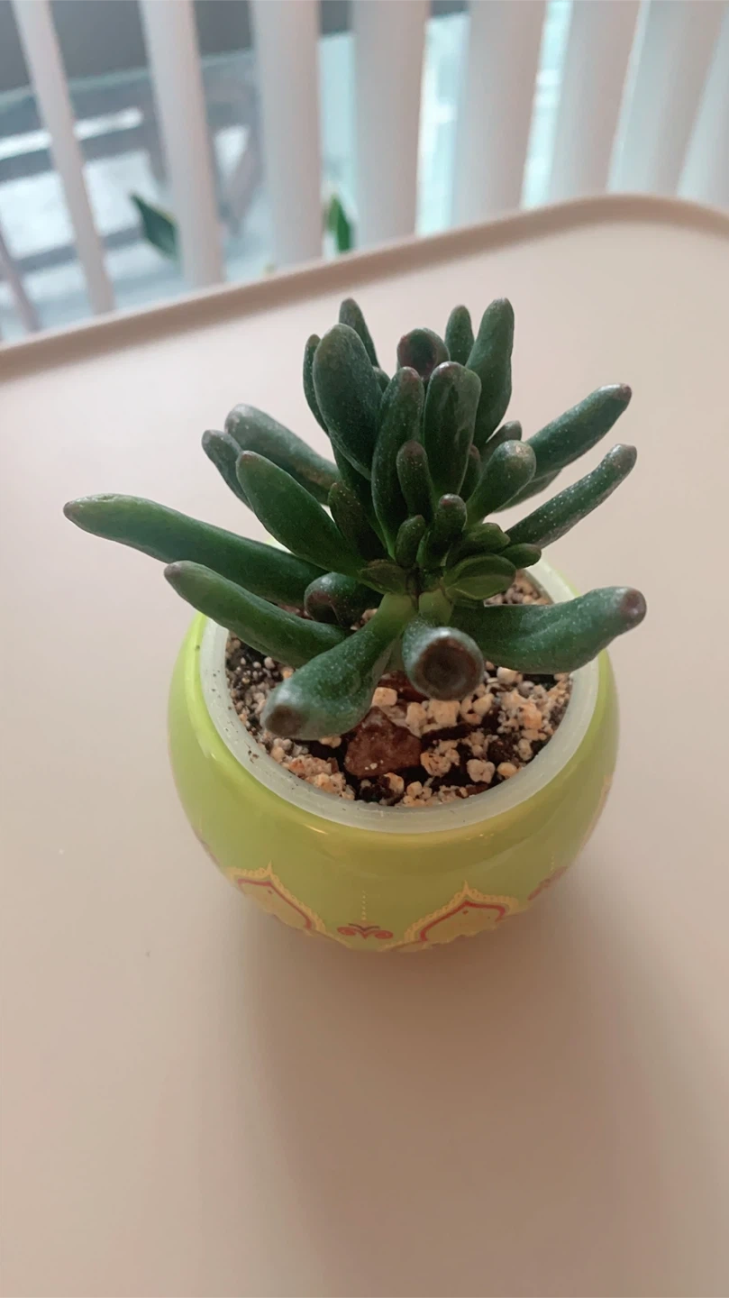 A cute little succulent plant in a decorative pot! It's perfect for adding a touch of green to any space.