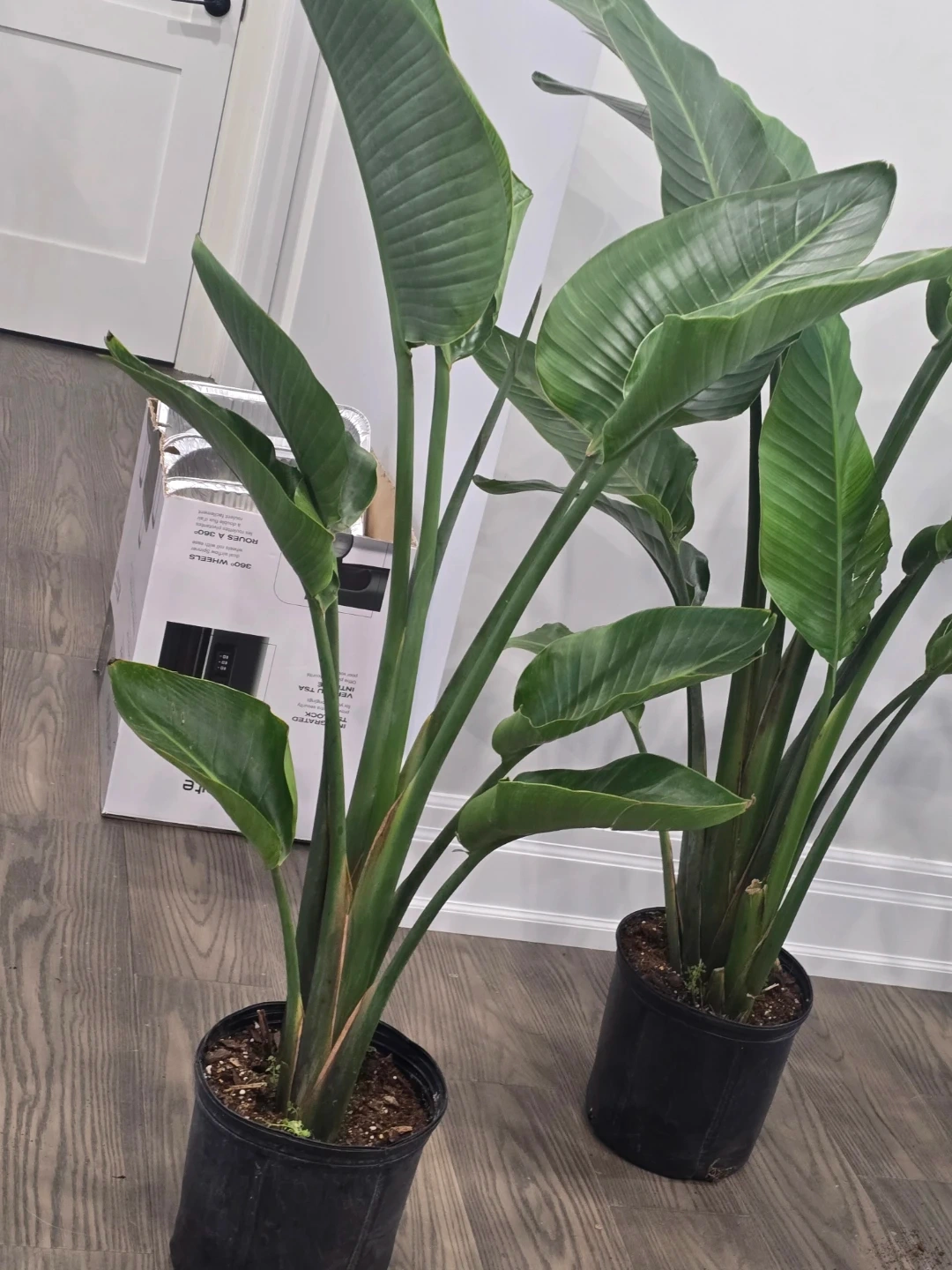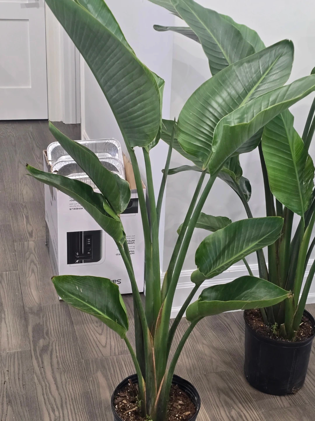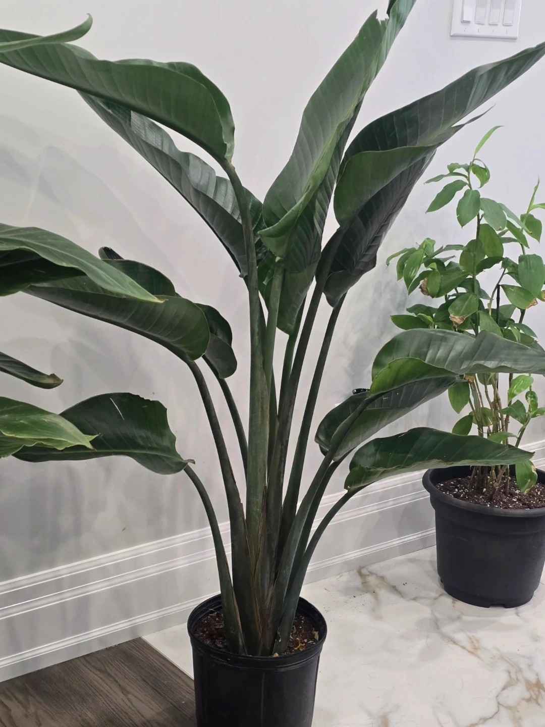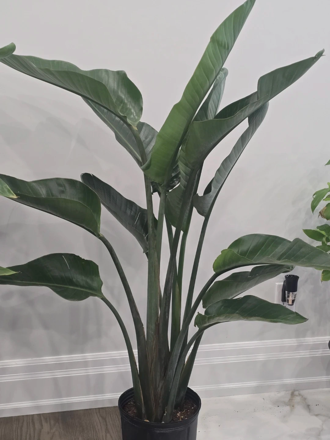 Selling a healthy Bird of Paradise plant in a black pot. It's a beautiful plant that will add a tropical feel to your home!