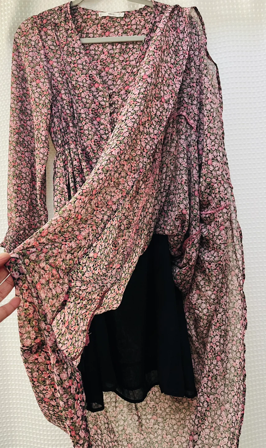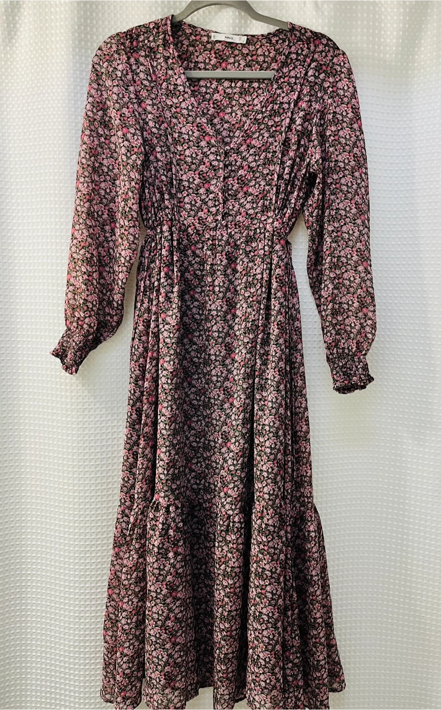 Selling a lovely MNG dress in size M! It features a beautiful floral print and long sleeves, perfect for transitioning between seasons. Has pull strings to loosen or tighten waist, can fit L size too! Has a built in liner as well. Never Worn, brand new.