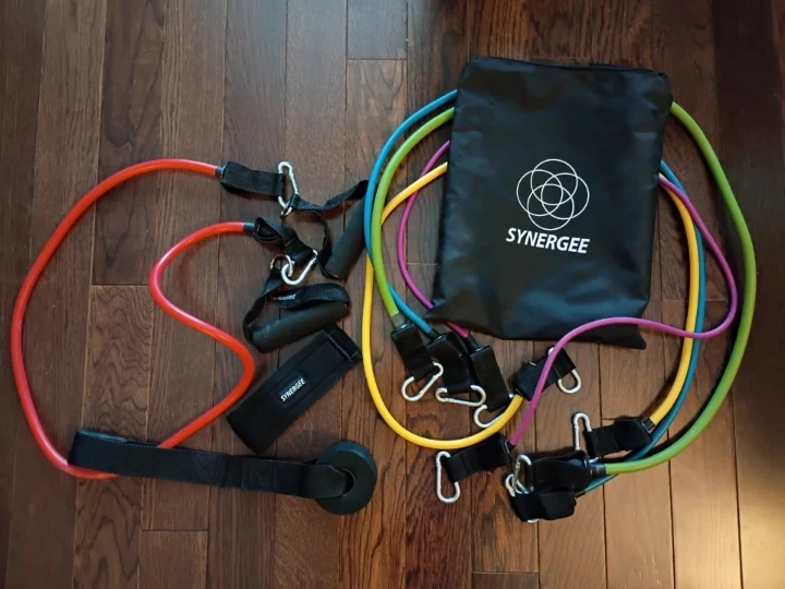 Selling a Synergee resistance exercise band set! It comes with a variety of bands, handles, ankle strap, door anchor, and travel bag. Perfect for home workouts or taking on the go. Never used.