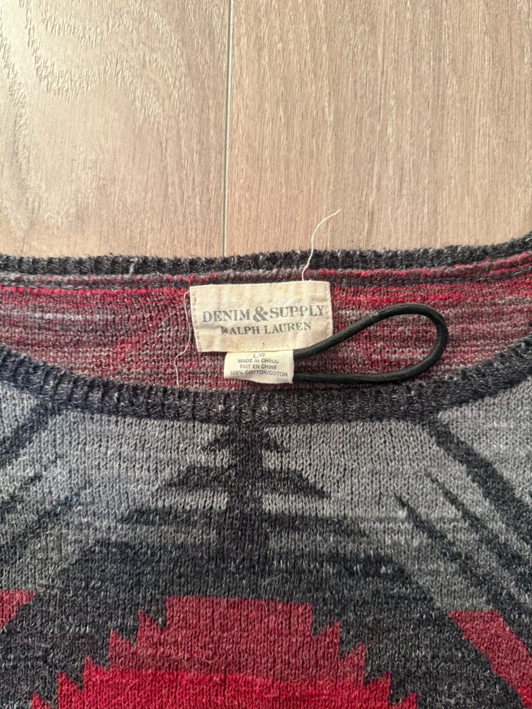Cozy Denim & Supply Ralph Lauren sweater in a size large! The sweater features a unique pattern with shades of red, grey, and black. It's made of 100% cotton, making it super comfy for those cooler days. Perfect for adding a touch of style to your wardrobe! Only worn a few times, Im selling since Im a student! I do discounts on bundles!!