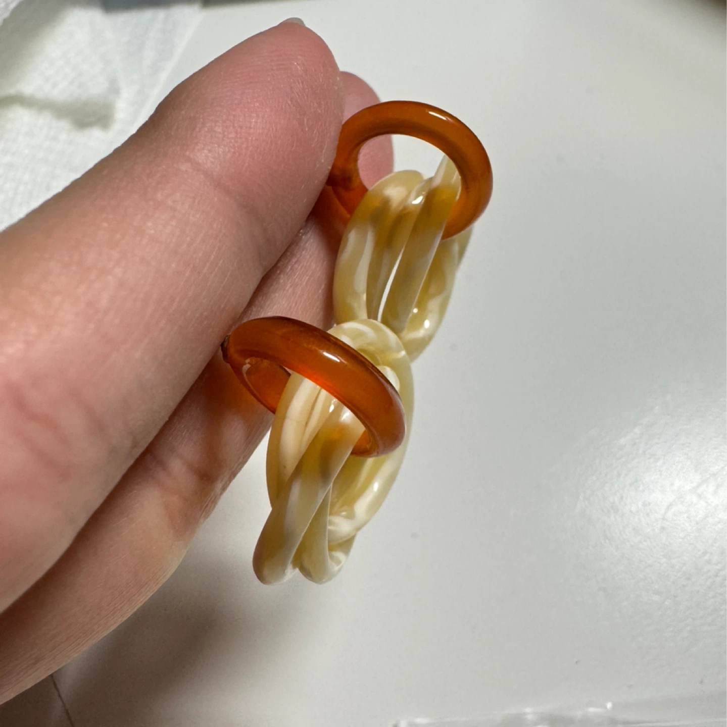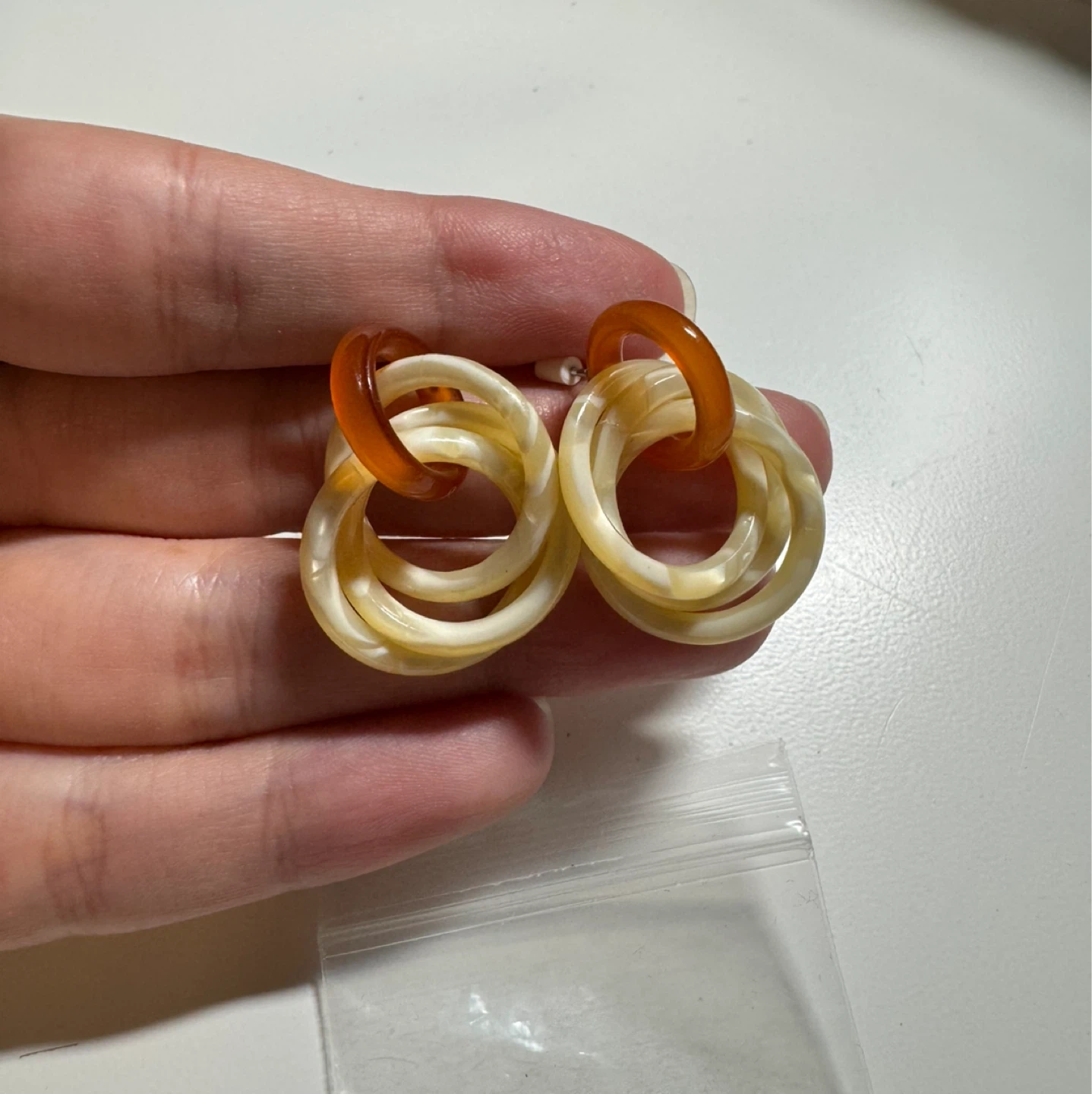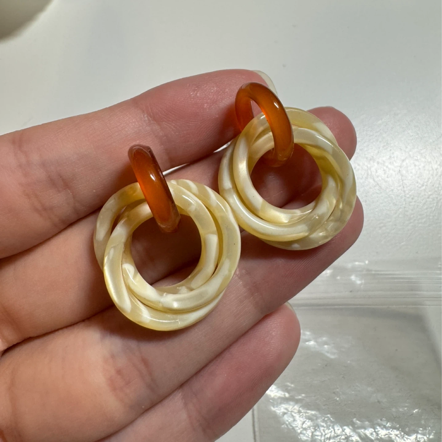 These are a cute pair of circle drop earrings! I never use them so I hope they find a good home! The colours are cream and brown. They are in great condition and ready to wear