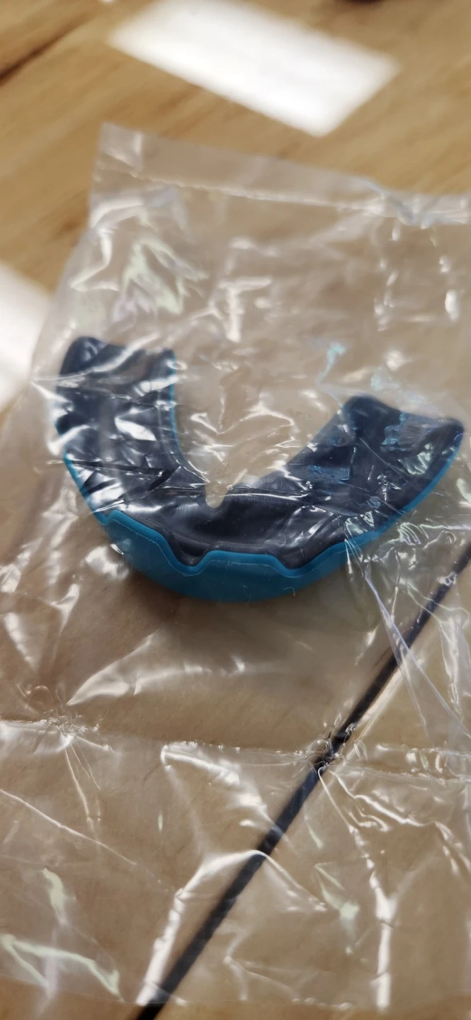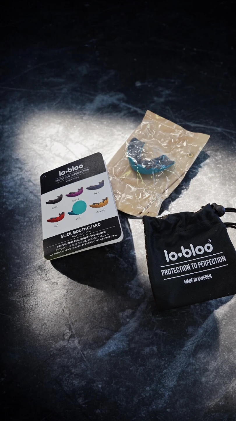 I'm selling a brand new lo.bloo Slick Mouthguard! It's still in its original packaging and includes a carrying pouch. This mouthguard offers professional dual-density protection and is made from a material that should mold to your teeth after a bite.