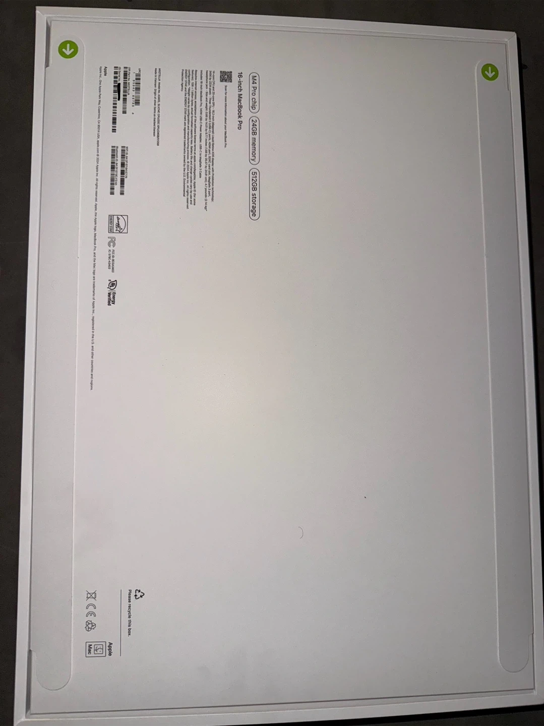Selling a Macbook Pro 16-inch in Silver. It comes with the Apple M4 Pro chip built for Apple Intelligence, 24GB of memory, and a 512GB SSD. It comes with the box