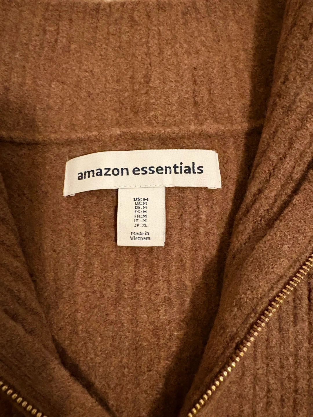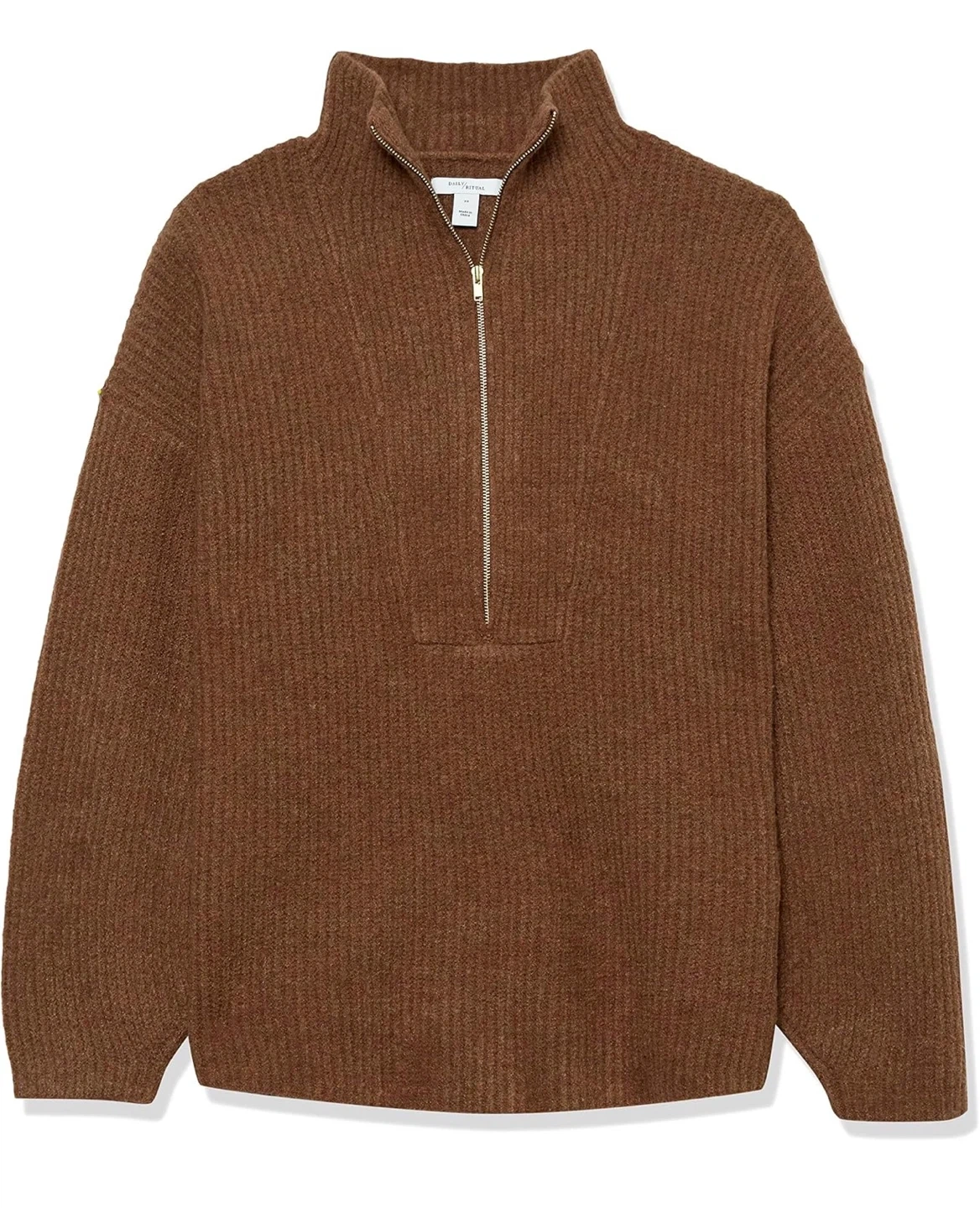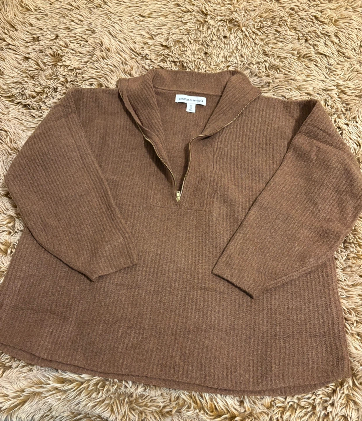 Cozy brown sweater from Amazon Essentials! Features a half-zip design and a comfortable fit. Perfect for layering during cooler weather.