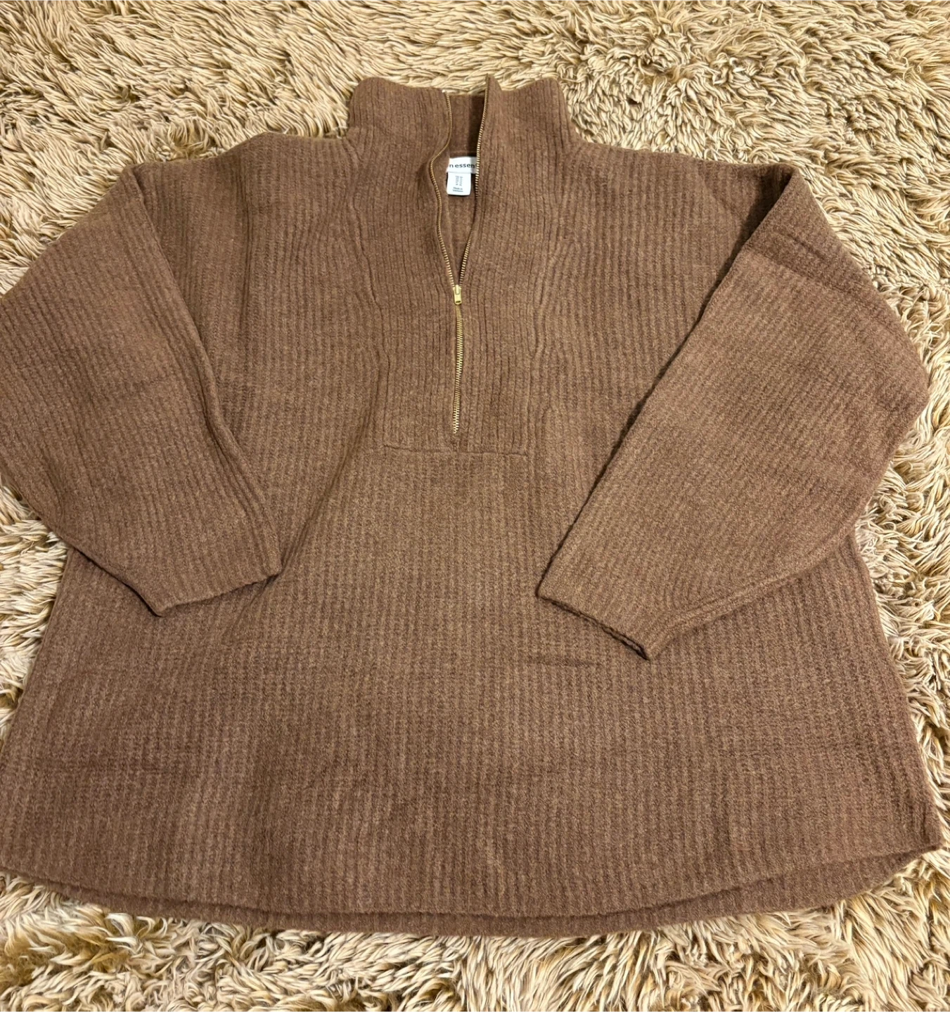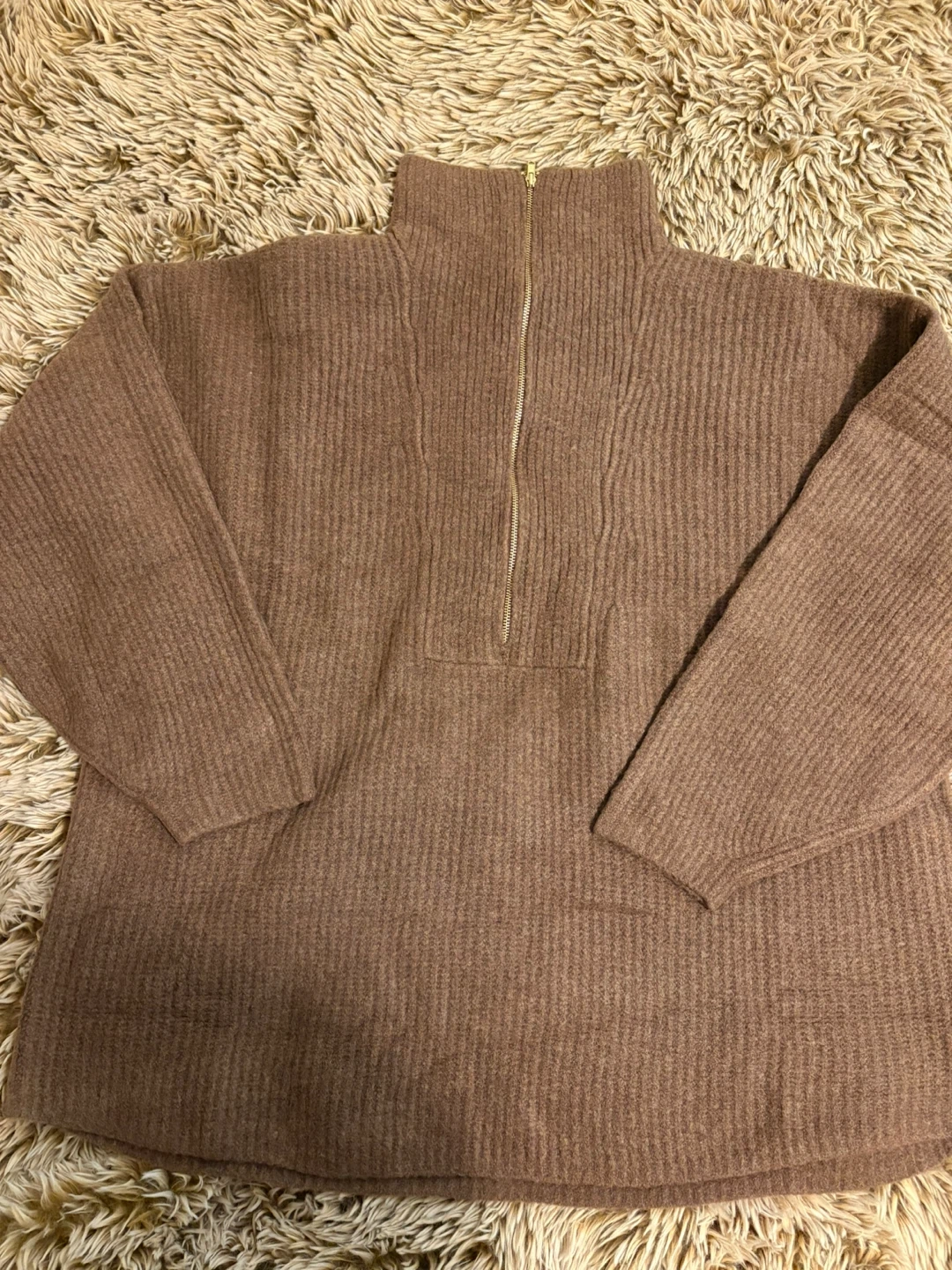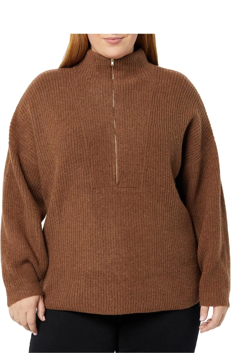 Cozy brown sweater from Amazon Essentials! Features a half-zip design and a comfortable fit. Perfect for layering during cooler weather.