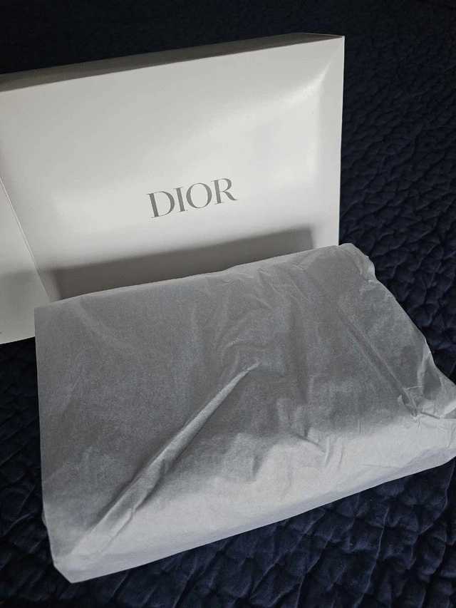 This new Dior pouch is a sleek and stylish accessory, perfect for carrying essentials. The pouch features the Dior logo prominently displayed on the front. It comes with its original box and packaging, ensuring its pristine condition.