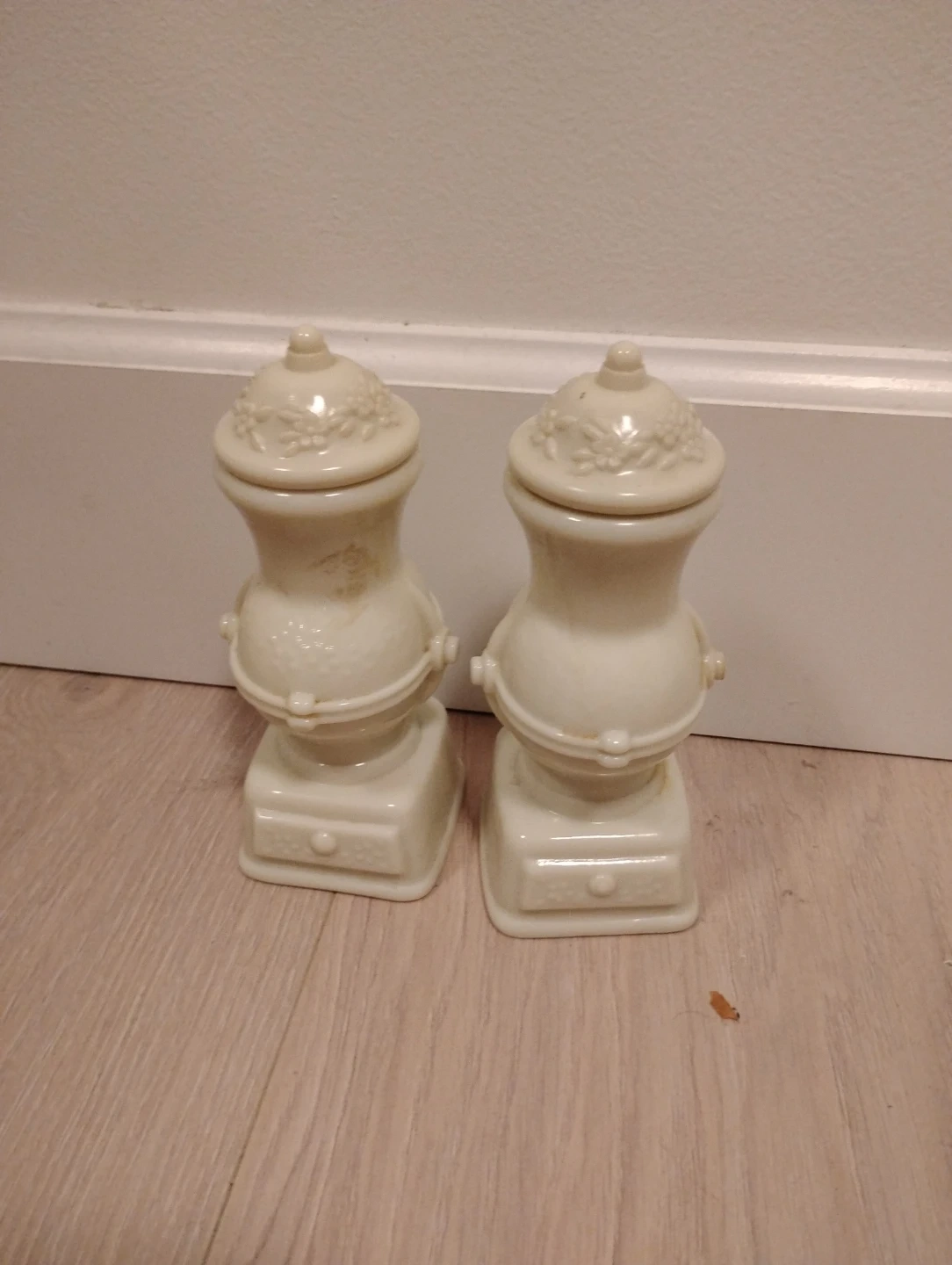 Selling a pair of vintage calon They have a unique design and would look great in any kitchen or dining room. They're in good condition and ready to use! Ones full of cologne
