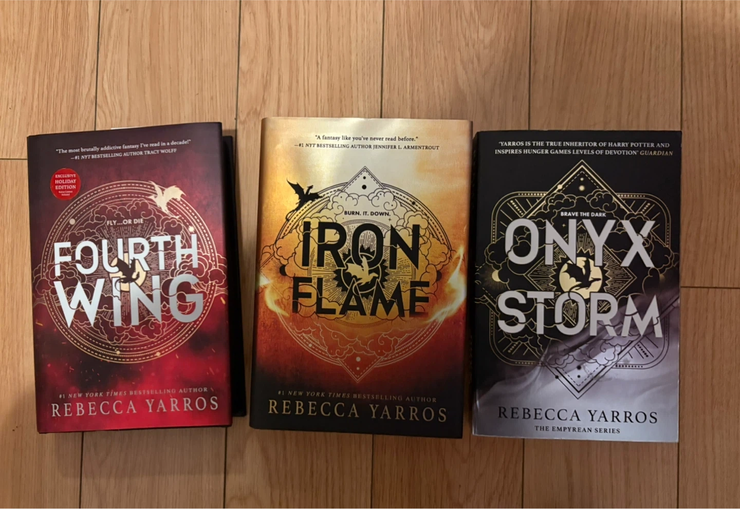 I’m selling the first three books by Rebecca Yarros: Fourth Wing, Iron Flame and Onyx Storm. Perfect for people who enjoy fantasy.