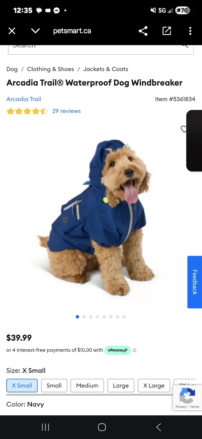 Selling a brand new Arcadia Trail Waterproof Dog Windbreaker in size X Small and Navy colour! It's a great way to keep your furry friend dry and comfortable during walks in wet weather. Originally bought for $39.99