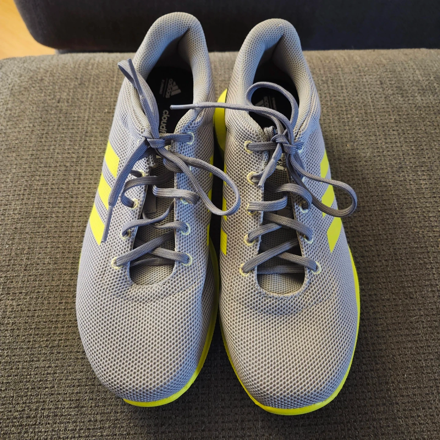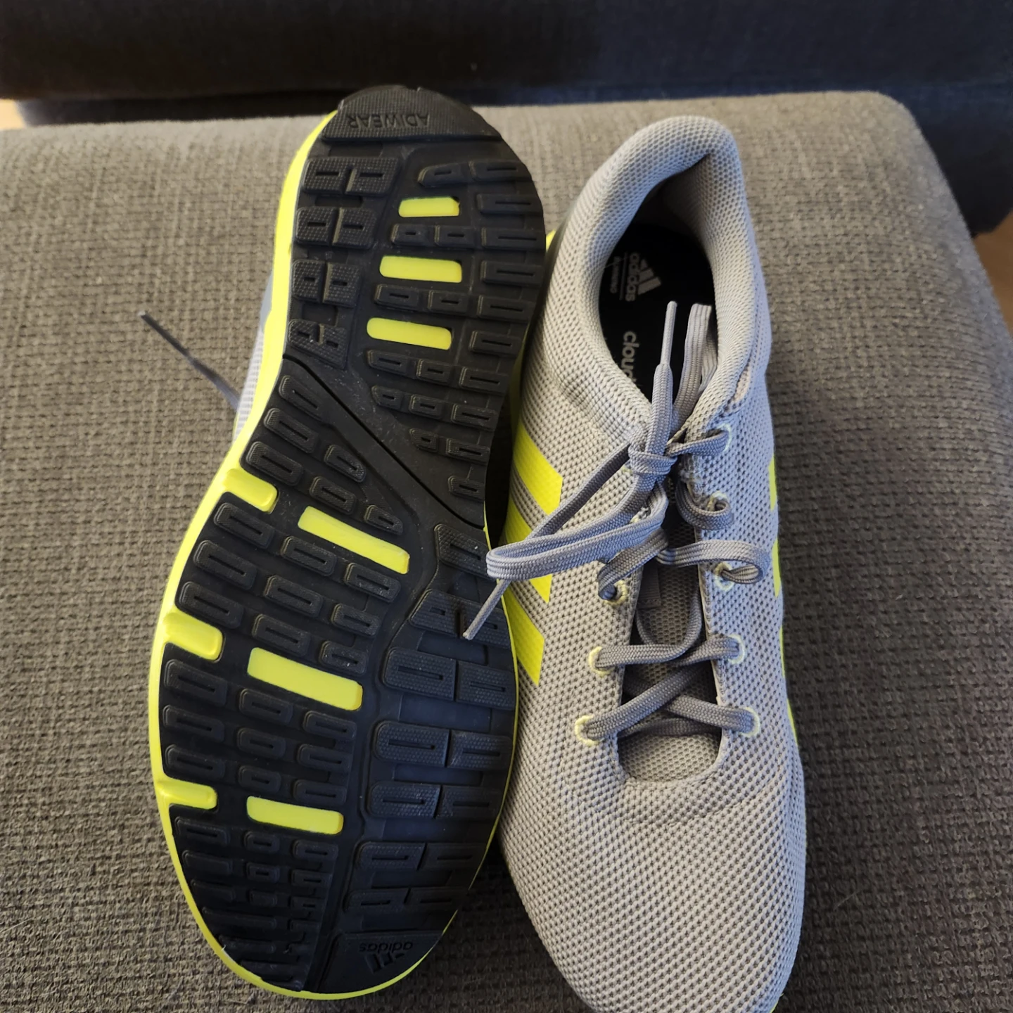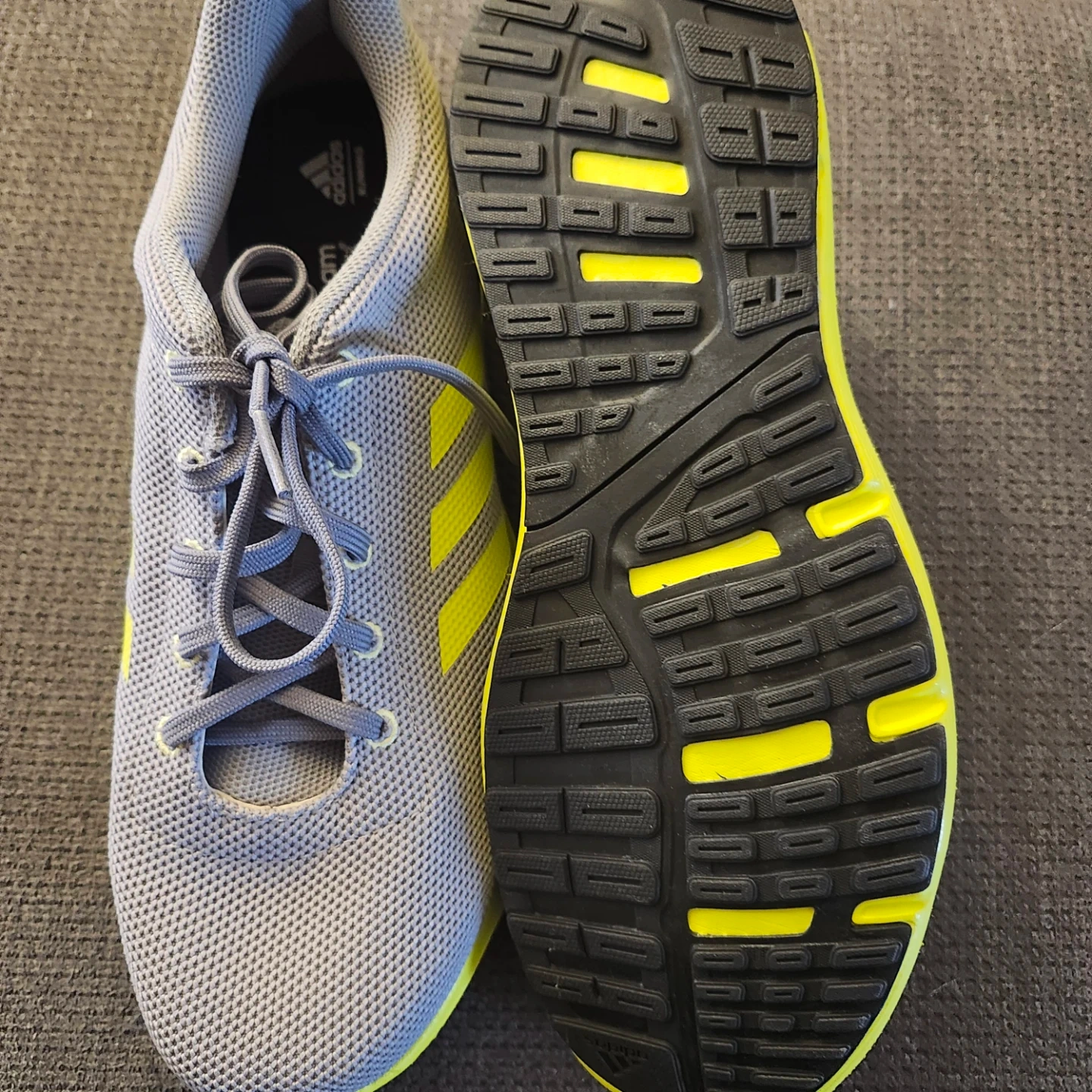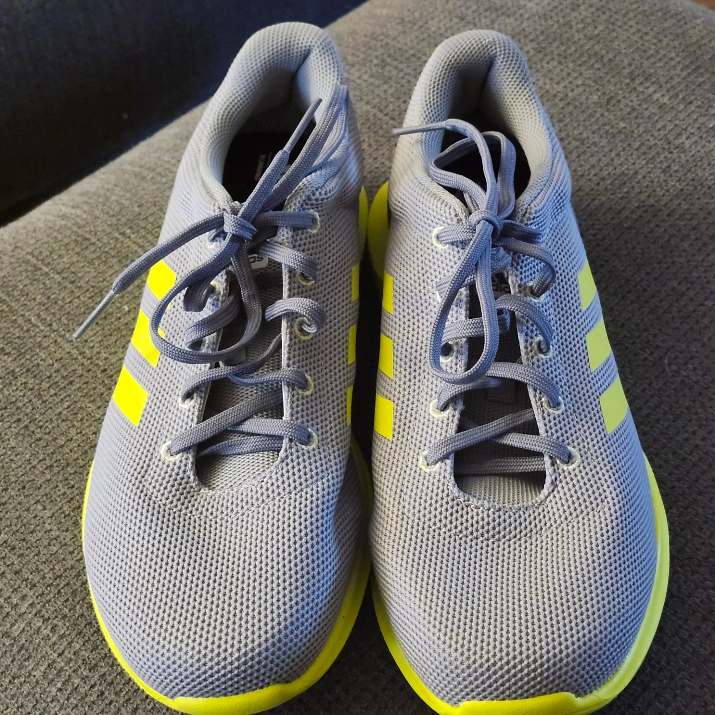 Adidas Adwear running shoes in great shape! They feature a grey and yellow colour scheme and are a US size 10.5. Perfect for running or everyday wear!