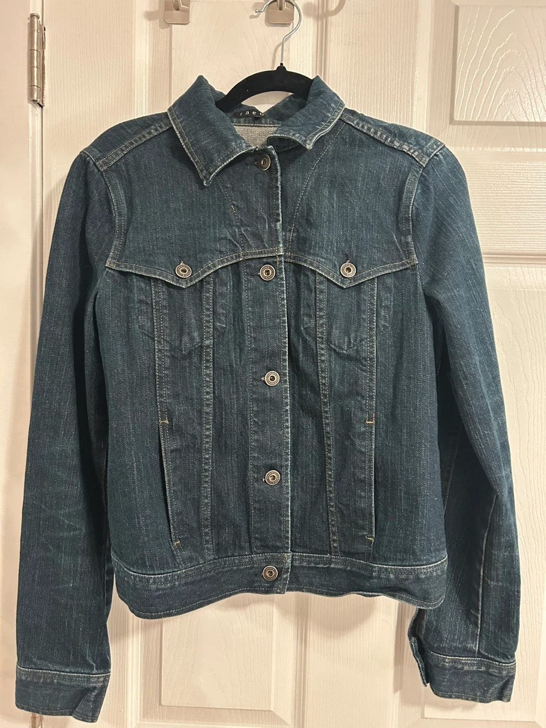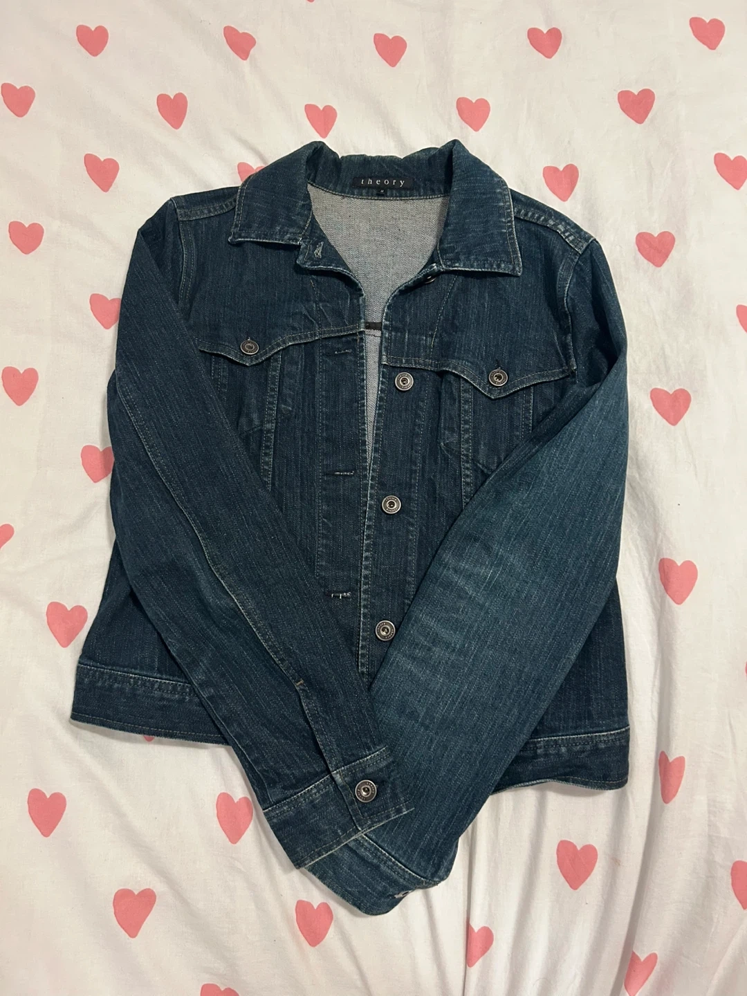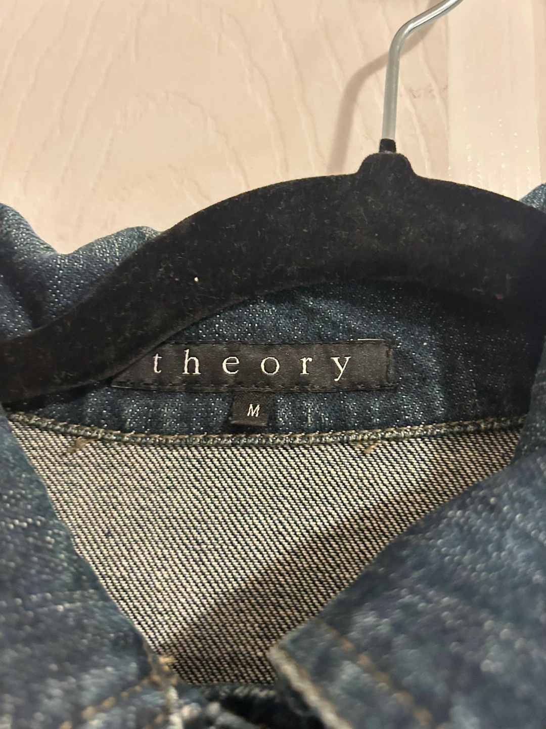 Selling a Theory denim jacket in size M. It's a classic piece that would look great in any wardrobe! It's in great condition and ready for a new owner