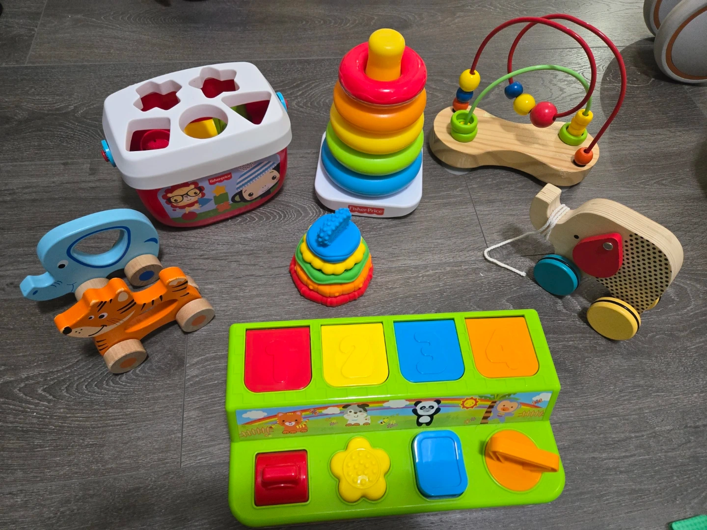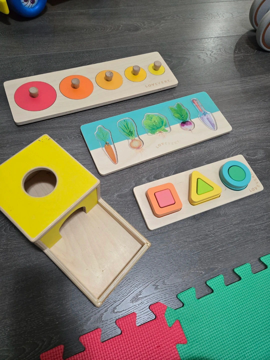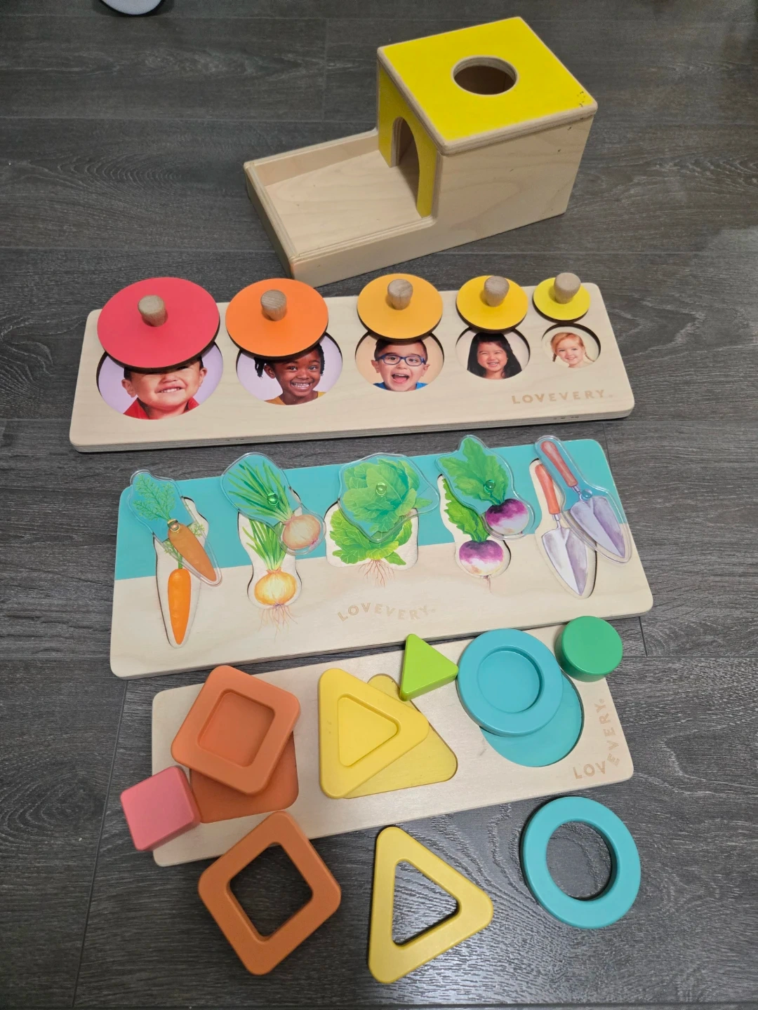 Selling a bundle of Lovevery toys! These are great for early childhood development and are in good condition. Includes a variety of puzzles and shape sorters for little ones. Cash only.