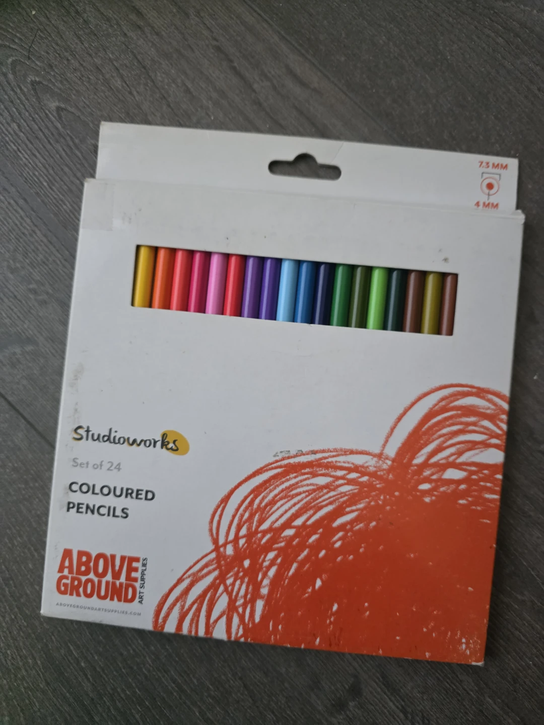 Selling a set of 24 Studioworks coloured pencils. Perfect for art projects or just having some colourful fun! The pencils are 7.3 mm with a 4 mm lead. They come in a box from Above Ground Art Supplies