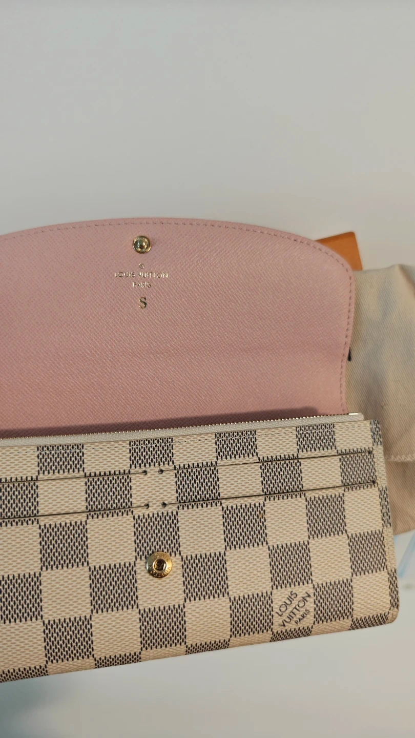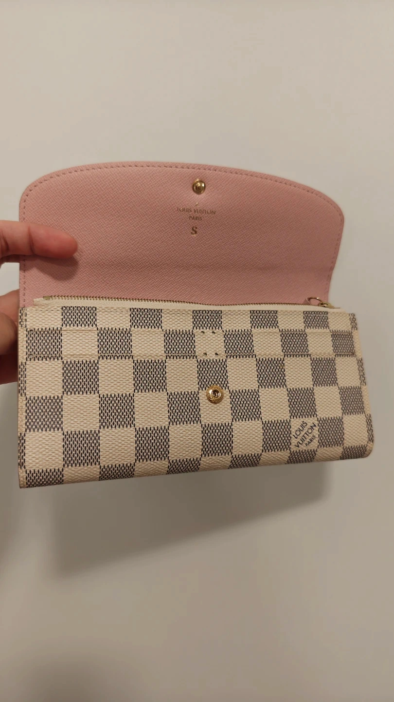 Selling a Louis Vuitton Damier Azur Zippy Wallet! It's in great condition and comes with its original box, receipt and dust bag. The interior is a lovely pink colour with an engraved S.