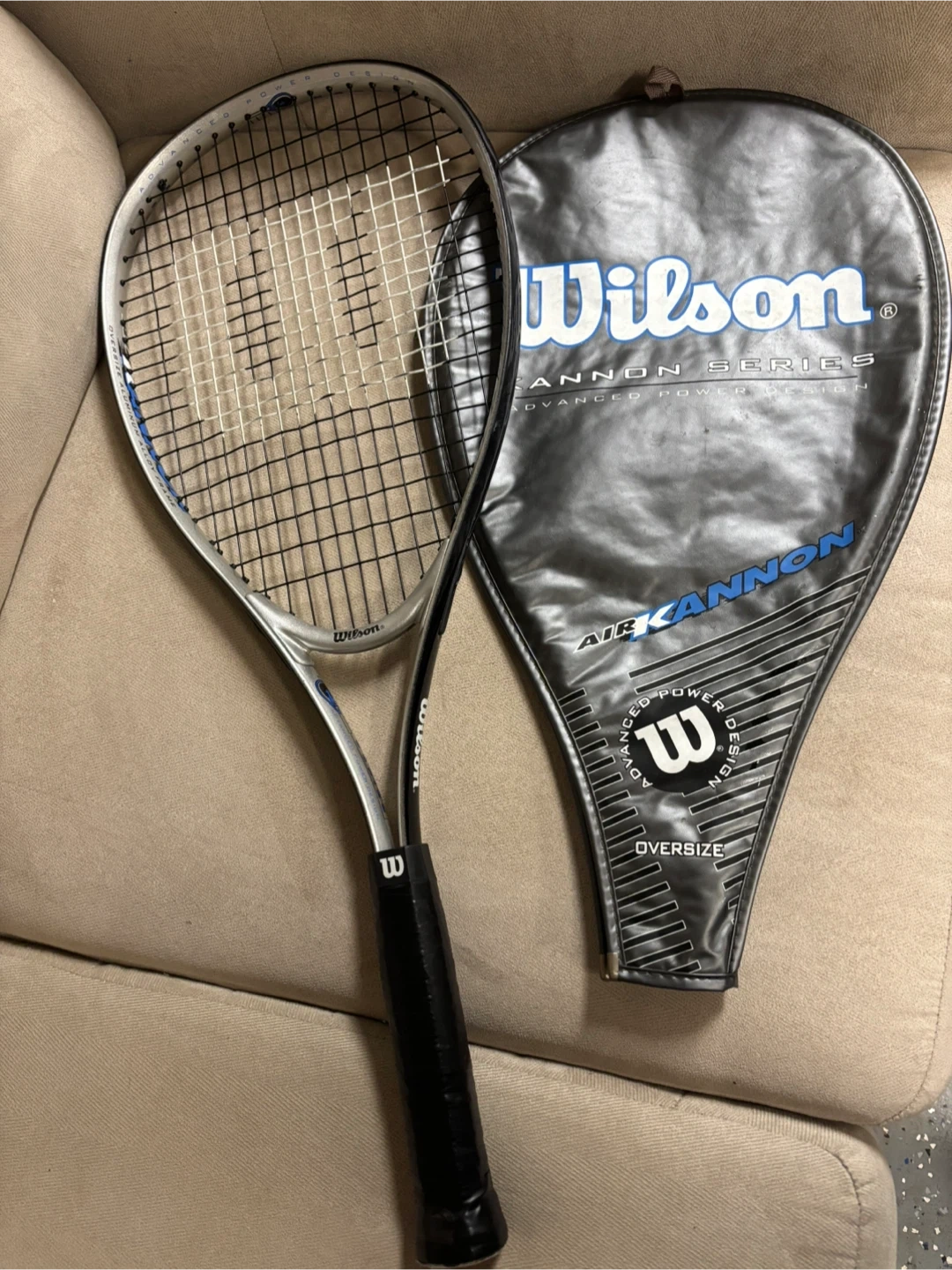 Selling a Wilson Air Cannon tennis racquet. It comes with its original case. The racquet is an oversize model, perfect for players looking for a larger sweet spot and added power. Great for improving your game!