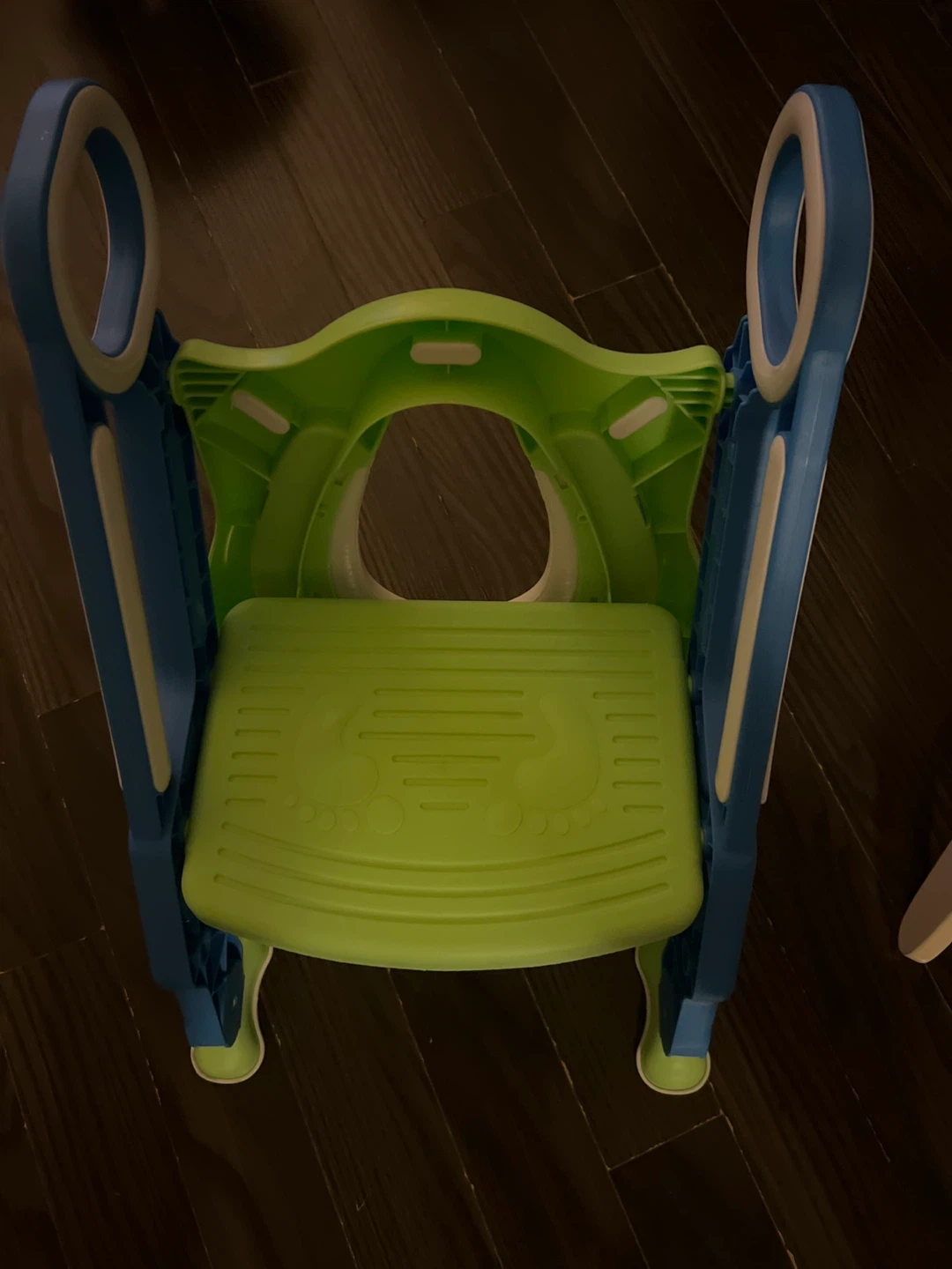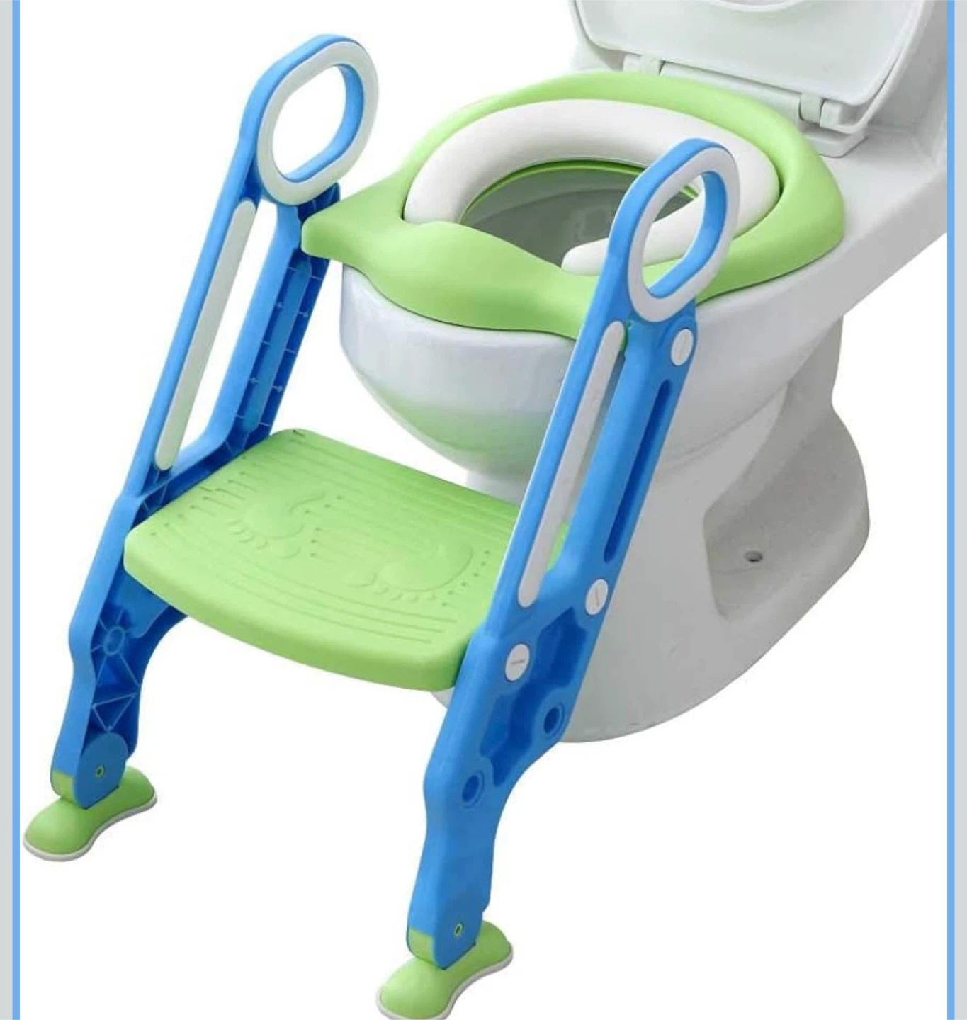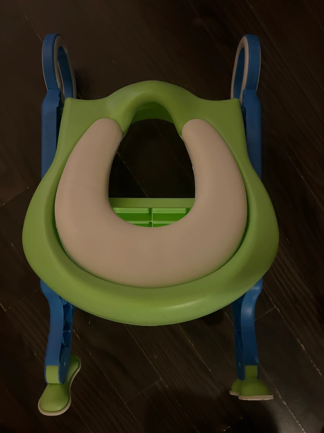 This potty training seat with a ladder is perfect for helping your little one transition to using the toilet! The seat is designed with comfort and safety in mind, featuring sturdy handles and a non-slip step. The blue and green colours are fun and engaging for kids, making potty training a bit easier and more enjoyable