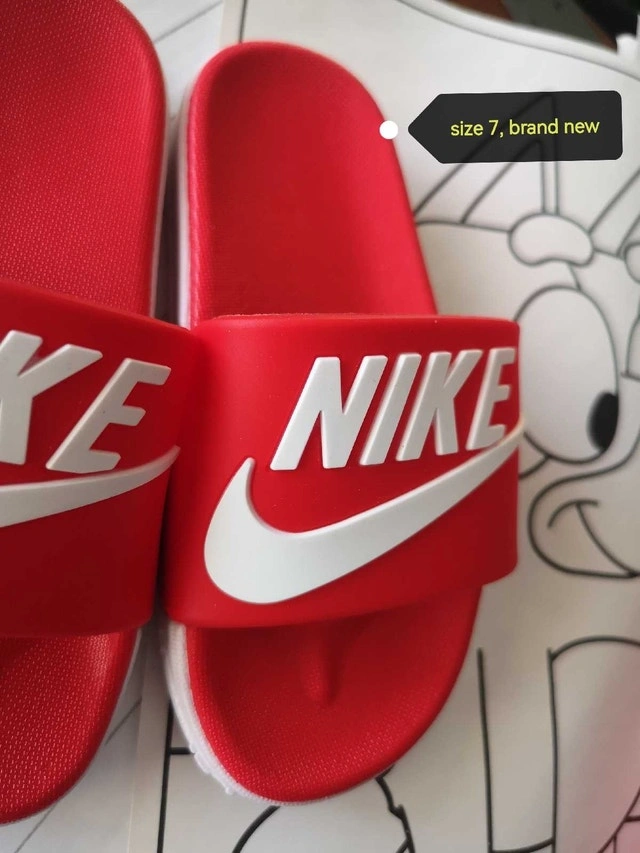 Get ready for summer with these brand new Nike slides, perfect for your little one! These vibrant red slides feature the iconic Nike logo and are a size 7. Ideal for the pool, beach, or just playing around, they offer comfort and style. Let me know if you're interested!