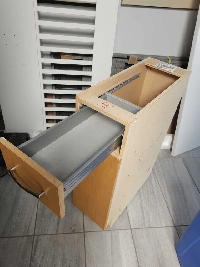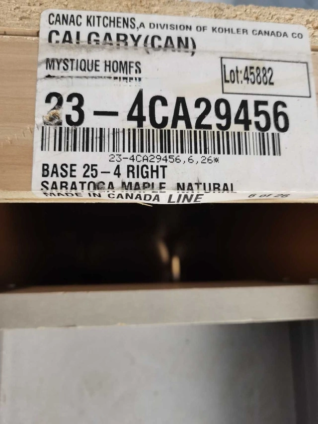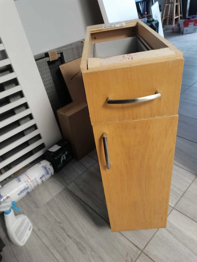 This is a Saratoga Maple Natural cabinet base, perfect for a kitchen or storage solution. It's in fair condition, showing some signs of wear, which you can see in the photos, but it's still functional and ready to be repurposed in your space. * Brand: Canac Kitchens * Style: Base 25-4 Right * Material: Saratoga Maple Natural height 36". If you're still reading this, it's still available!
