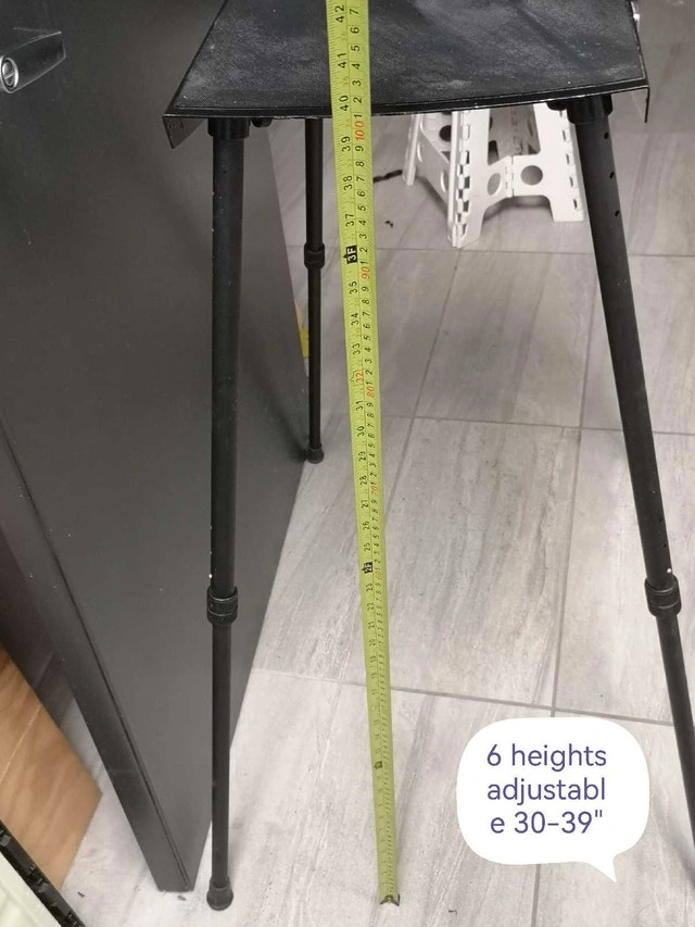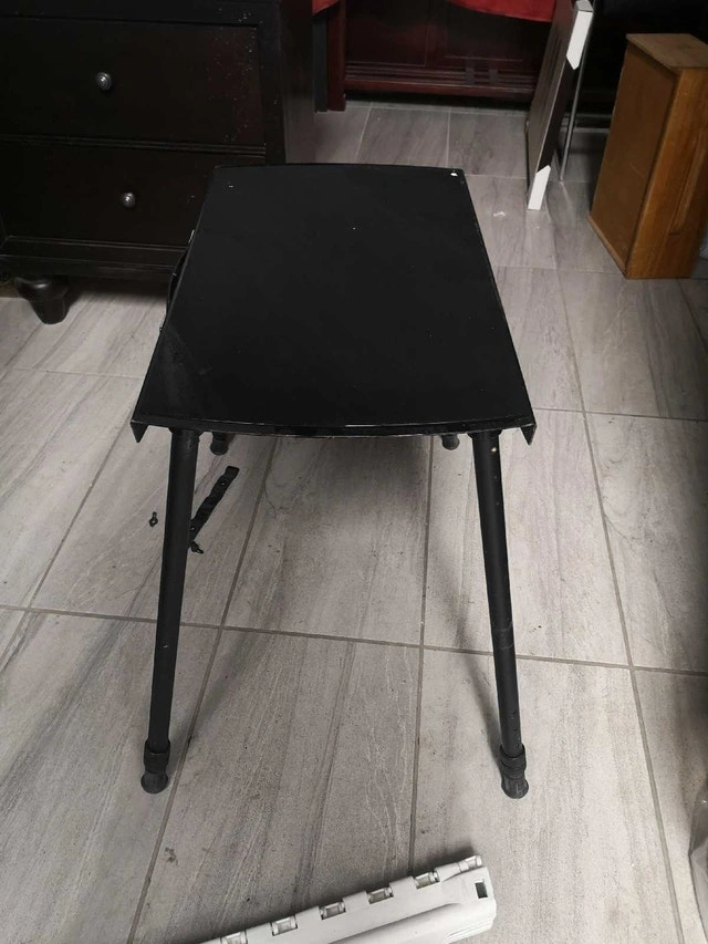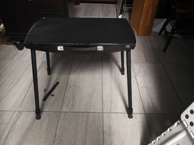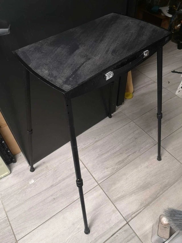 This is a black, adjustable height table. It is in used condition but still has plenty of life left. The table has 6 adjustable heights, from 30" to 39". * Adjustable height * Black colour * Easy to store Why settle for boring when you can have this table? Grab it before it moonwalks out of here! Don't miss out – if the ad's up, it's up for grabs!