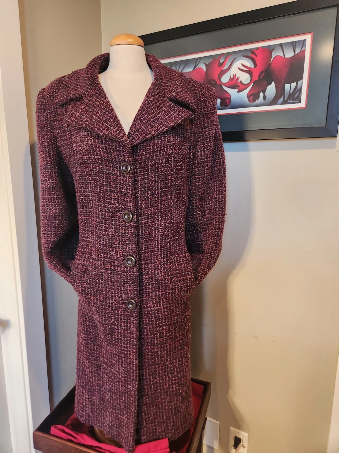 Selling a lovely vintage wool blend coat in a beautiful hues of purple, pink and burgundy tweed! Dress up jeans, leggings and skirts with this Smart looking wunter coat. A warm and stylish choice for any fashion lover. Size 12/16