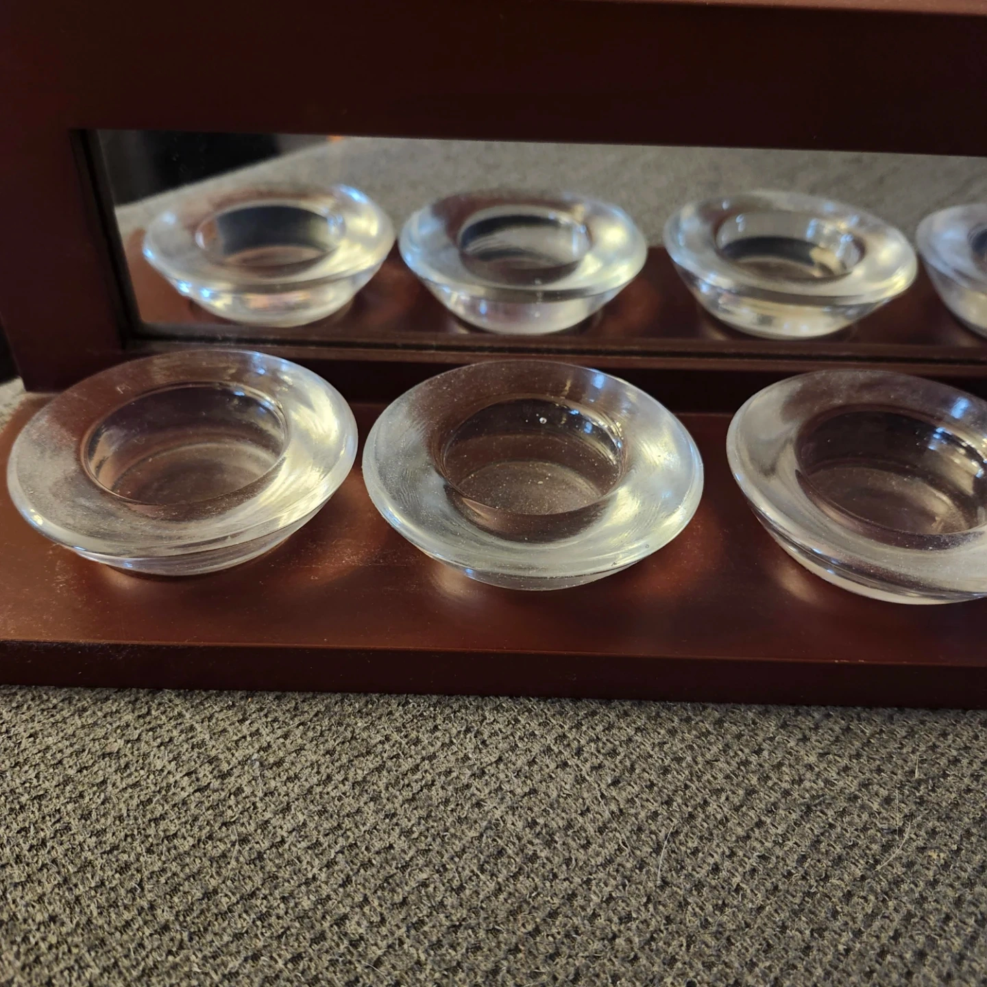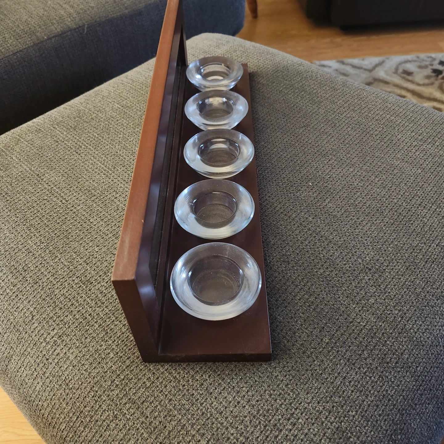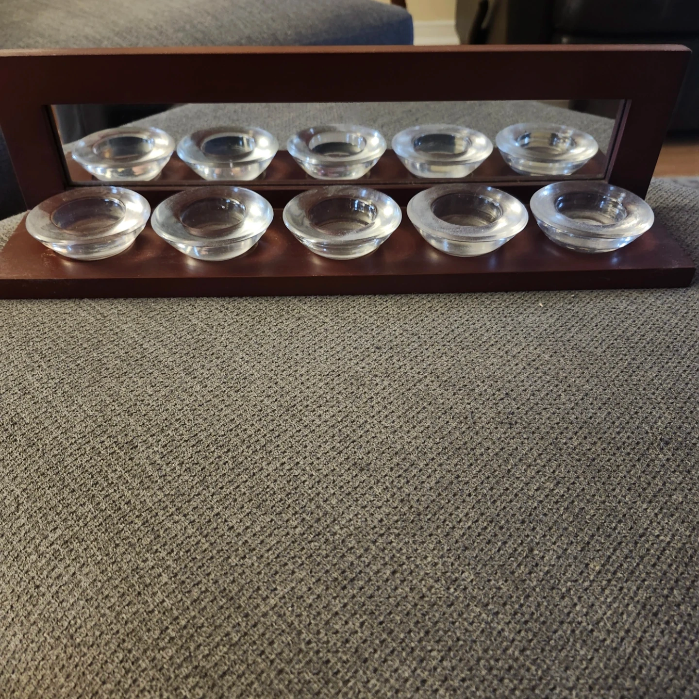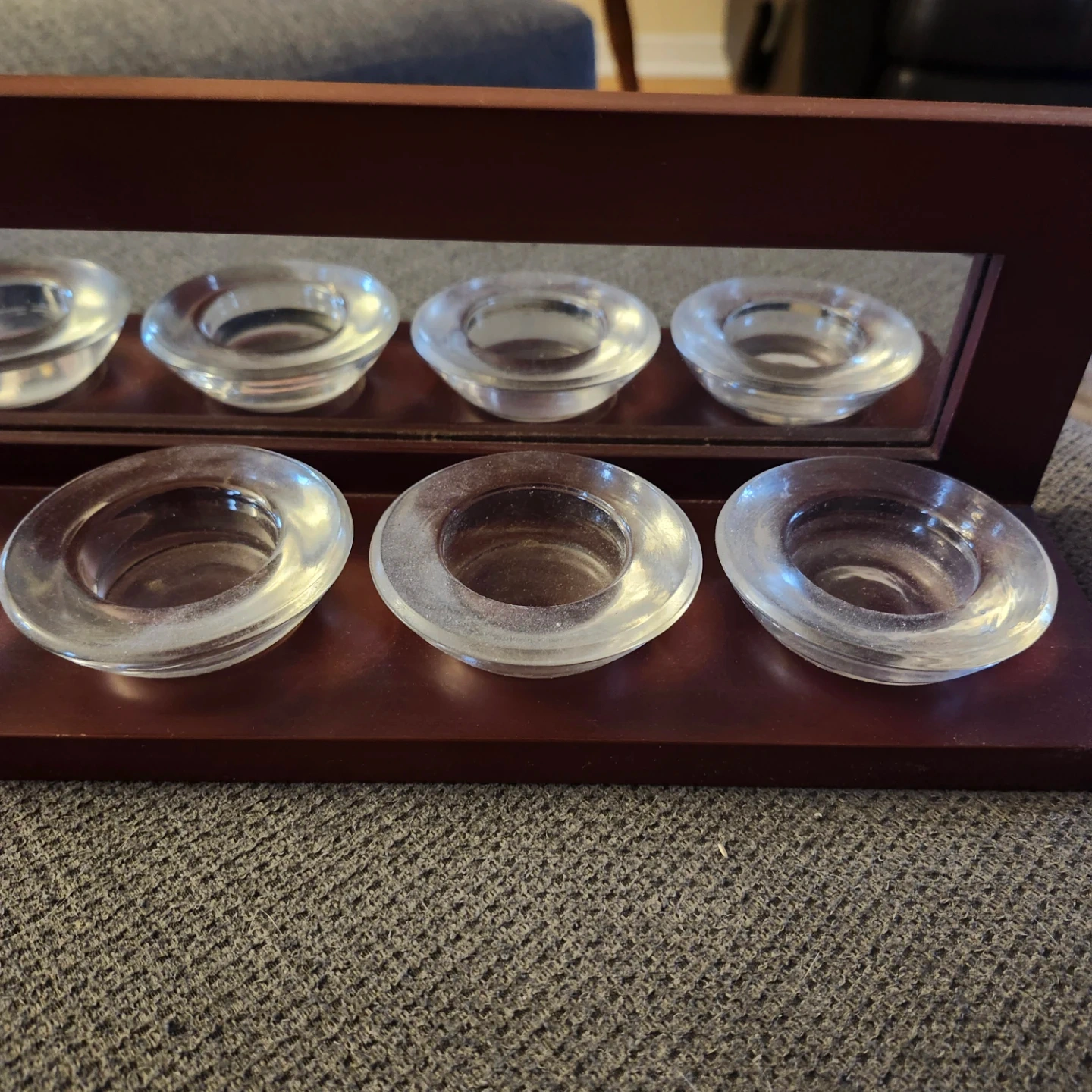 Selling a tea light candle holder with a mirror backdrop! It holds 5 candles. The frame is a dark brown colour. Great for adding a touch of cozy ambiance to any room