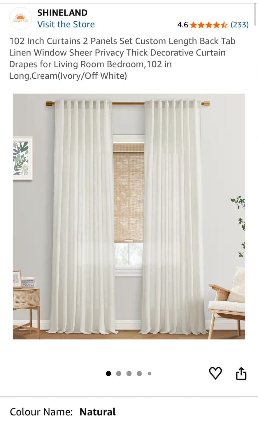 - 102 inch curtains in shades natural (semi sheer) & natural cream colour (blackout)