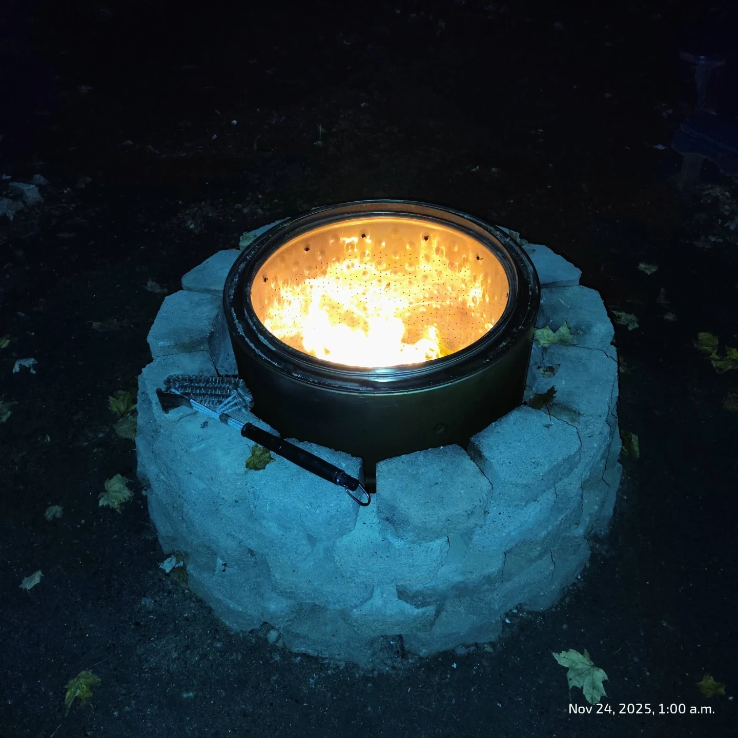 Smokeless drums that are 29" diameter on the inside and about 2 feet deep creating the best backyard or camping ground grillings center piece. ***DOES NOT*** including stone wall barrier.