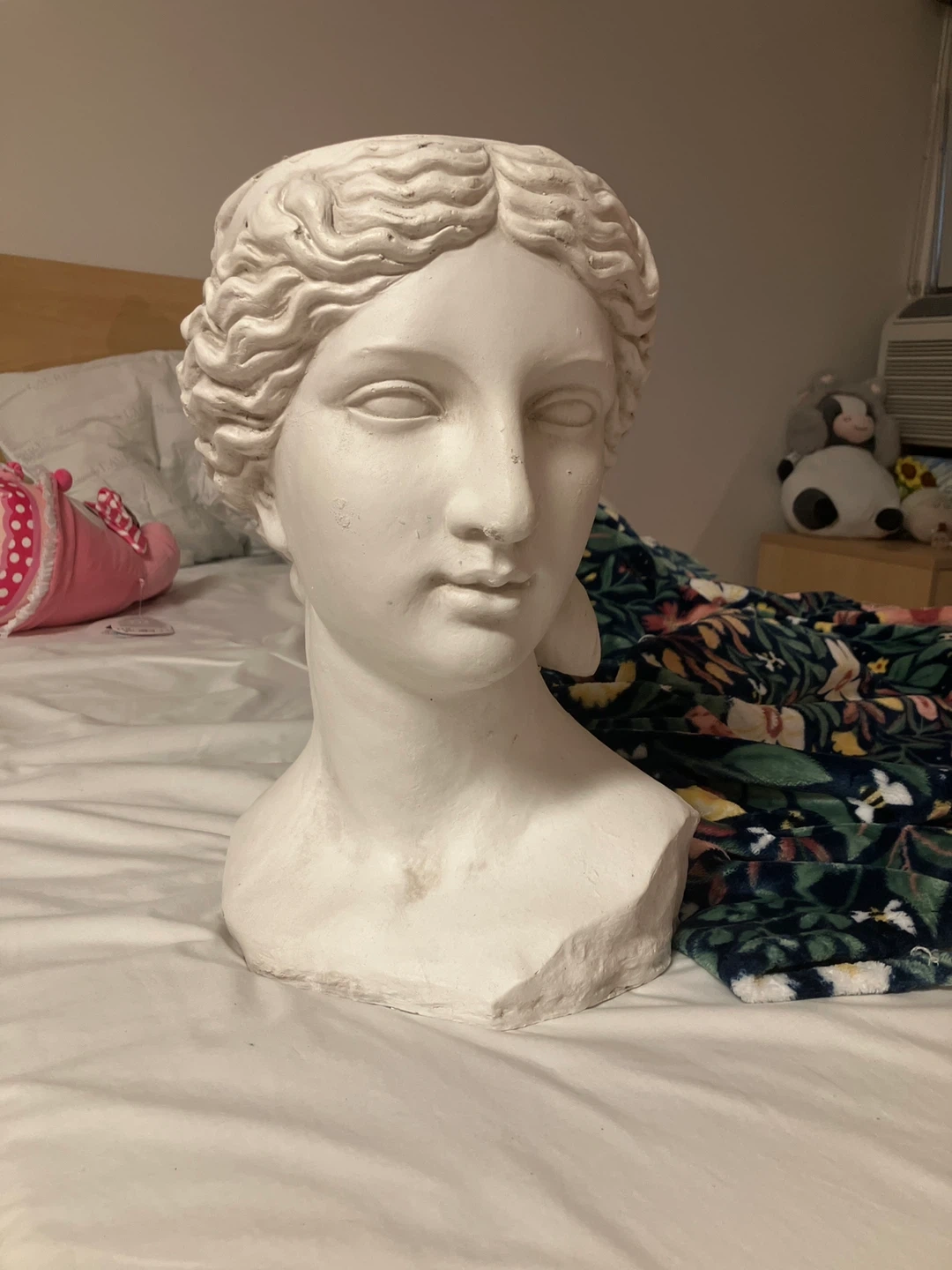 Here's a sculpture bust, perfect as a decorative piece for your home! It has a unique design and can add a touch of elegance to any room.
