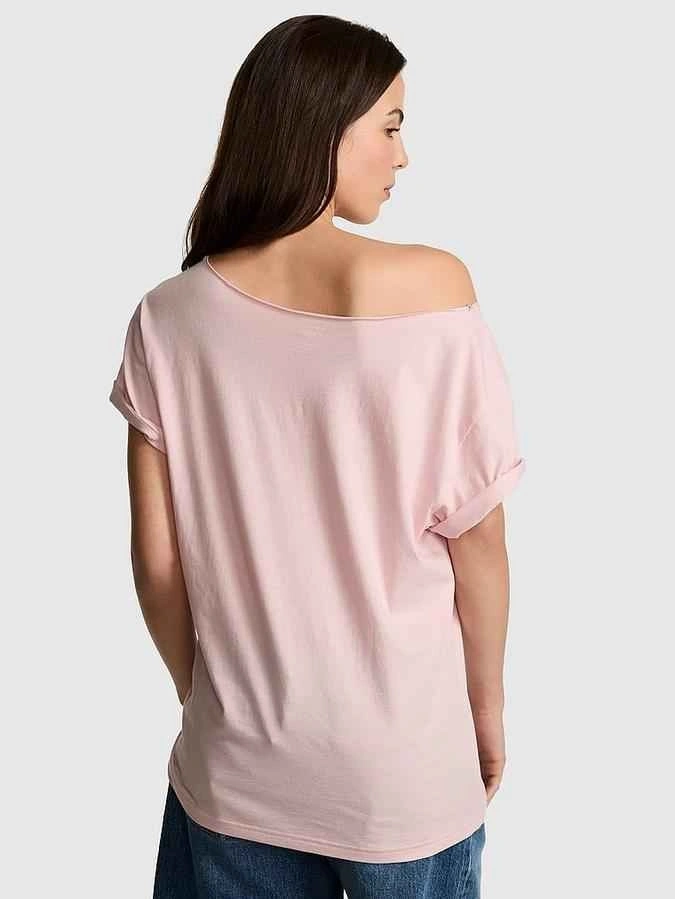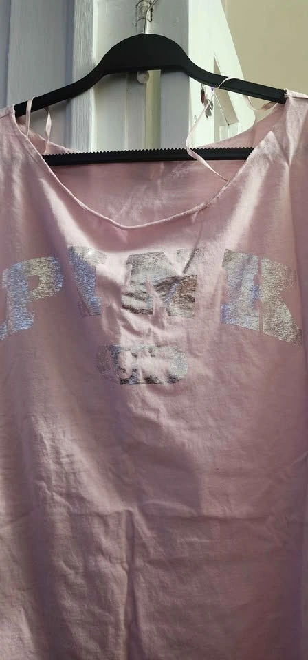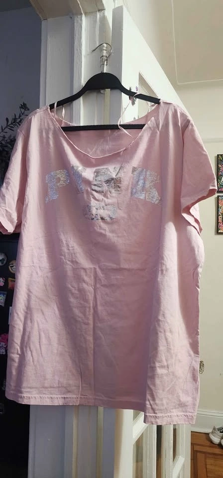 Victoria's Secret PINK off the shoulder doll house shirt in pink with silver lettering.