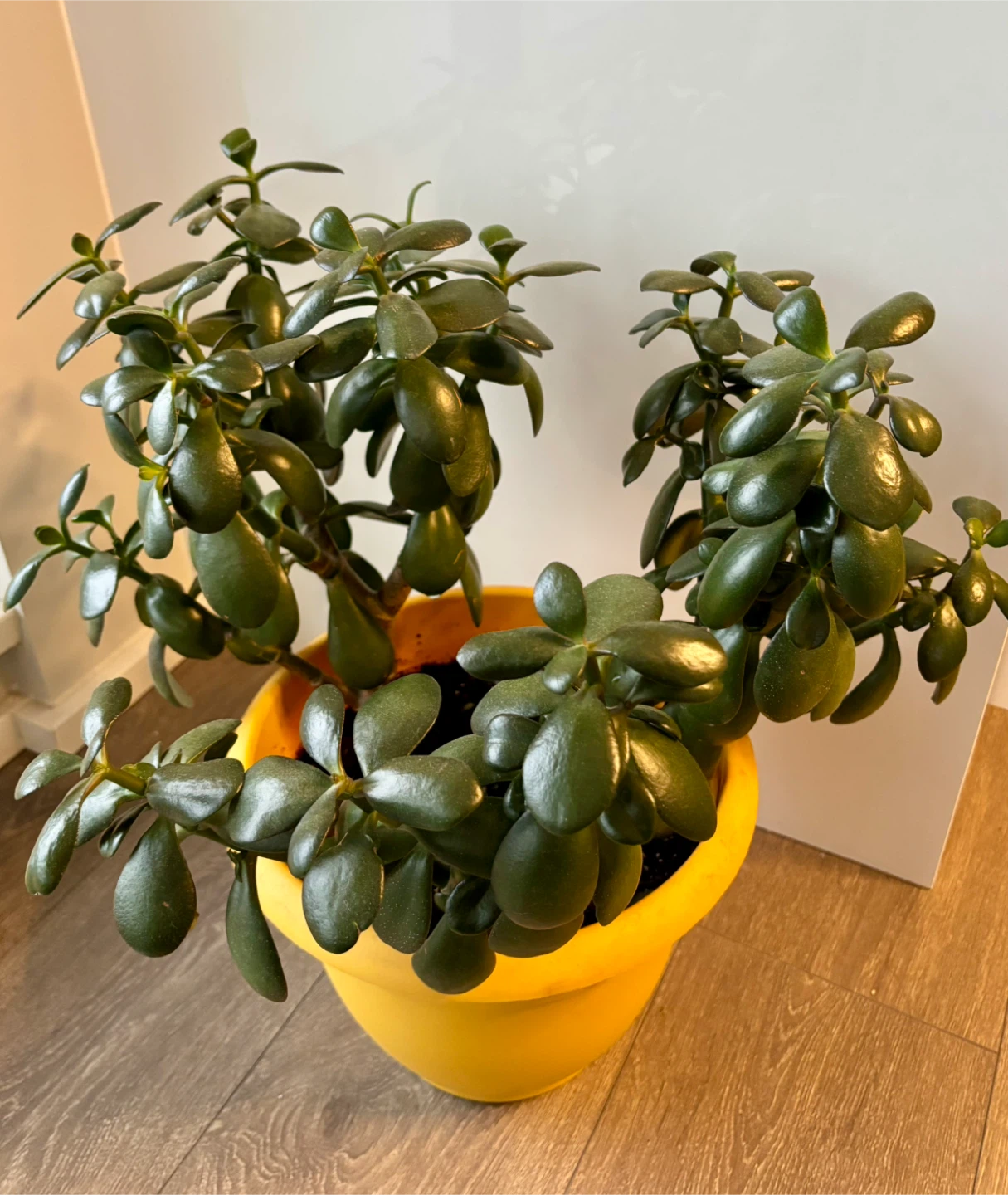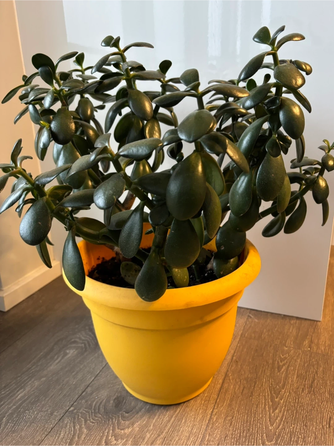 Selling a healthy jade plant trio in a bright yellow 11” pot! It's a great addition to any home and is super easy to care for. This plant is known for bringing good luck, so bring some positive energy into your space with this lovely jade plant.
