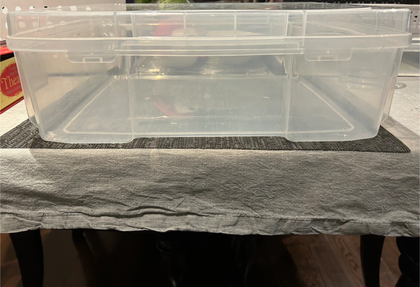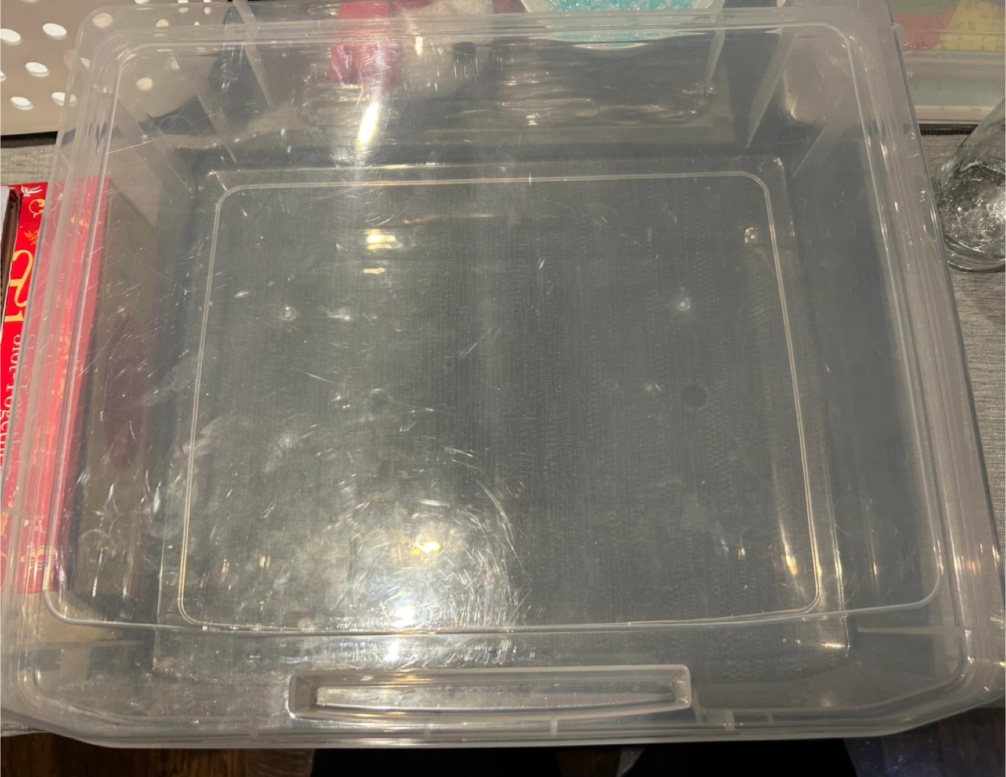 Selling a clear plastic storage box, perfect for organizing your things! It's in great shape and ready to help declutter your space. Happy to bundle with other items.